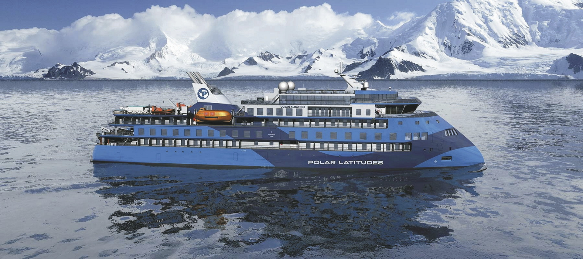 Die Ocean Albatros ist ein hochmodernes Polarexpeditionsschiff, das speziell für die extremen Bedingungen in der Arktis und in der Antarktis entwickelt wurde und Jahrzehnte an Erfahrung in der Polarfahrt verkörpert. Unter ihrer eleganten, futuristischen Außenhülle verbirgt sich ein Schiff, das Komfort, Sicherheit und Stabilität mit robuster Eistauglichkeit vereint: Der patentierte X-BOW®-Rumpf sorgt für eine außergewöhnlich ruhige Fahrt auch in schwerer See und verbessert die Bewegungsstabilität deutlich gegenüber traditionellen Schiffsrümpfen. Mit der hohen Eisklasse 1A und Polar Code 6 ist die Ocean Albatros in der Lage, durch tiefere Eisfelder zu navigieren und entlegene, spektakuläre Regionen zu erreichen, die anderen Schiffen verschlossen bleiben.