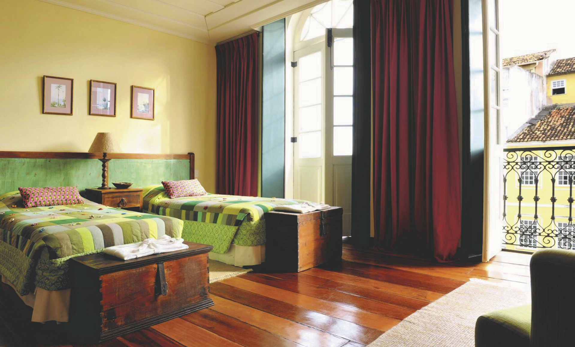 Die 17 Zimmer sind alle unterschiedlich eingerichtet und sind jeweils einer geschichtlichen Phase in Bahia gewidmet. Alle Zimmer verfügen über ein eigenes Bad, Klimaanlage, TV und einen Safe. Die Zimmer im obersten Stock haben zusätzlich eine kleine Terrasse.