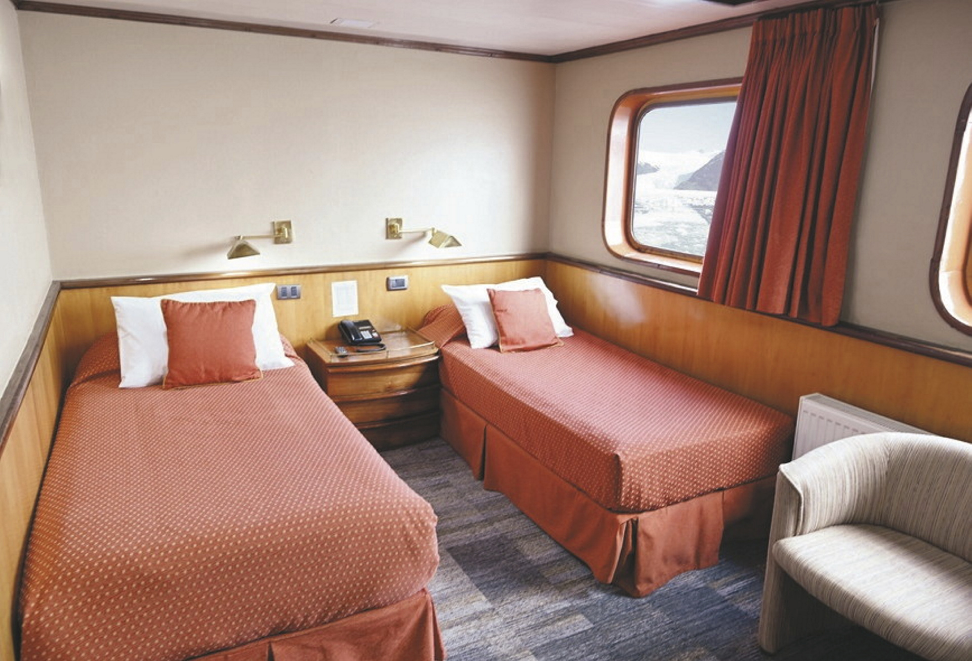 Die Skorpios III wurde 1995 erbaut und verfügt über 54 Kabinen in sieben Kategorien für insgesamt 90 Passagiere. Alle Kabinen sind Außenkabinen (außer Kabinen Atenas Deck), gemütlich eingerichtet und ausgestattet mit normalen Betten, Fenstern, Plasma TV, eigenem Bad/WC, Heizung, Wandschrank, Safe und Minibar mit kostenlosen Getränken. An Bord befinden sich ein Speisesaal, Aufenthaltsbereiche und zwei Bars. Bordsprachen sind Englisch und Spanisch.