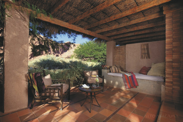 Insgesamt verfügt die Lodge über 42 Zimmer & Suiten. Die geräumigen Zimmer (ca. 50 m²) sind ausgestattet mit Minibar, Safe, Bad mit DU/WC und einer privaten Terrasse. Die Quitor-Zimmer bieten Blick auf den Garten, die Catarpe-Zimmer auf die Cordillera de la Sal und das Catarpe-Tal.