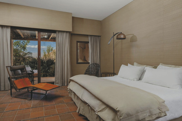 Das Hotel fügt sich harmonisch in die Umgebung ein und spiegelt den Charakter der Landschaft wider. Schlichte Eleganz und Handwerkskunst schaffen eine behagliche Atmosphäre. Für Ihr Wohlbefinden sorgen mehrere Pools und Jacuzzis, eine Sauna, ein Spa, gemütliche Sitzbereiche und ein Restaurant. Eine Besonderheit ist ein großes Teleskop zur Sternenbeobachtung. In Kleingruppen mit max. 8 Hotelgästen erkunden Sie die faszinierende Umgebung zu Fuß, mit dem Fahrrad oder im Minivan.