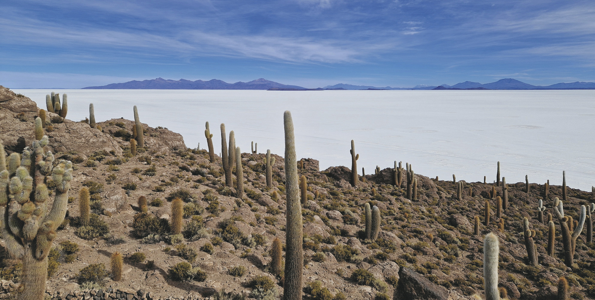 Tahua – Siloli (F/M/A).Wieder tauchen Sie ein in die endlos scheinende Salzfläche. Von der Insel Incahuasi mit bis zu 12 Meter hohen Kakteen genießen Sie herrliche Ausblicke. Nachmittags erreichen Sie die Vulkanregion Lipez und verschiedene Hochlandlagunen, eingebettet in die faszinierende Landschaft des Altiplano. Ein Kaleidoskop an Farben und Eindrücken, die unvergesslich bleiben. Gegen Abend erreichen Sie die surreale Landschaft der Siloli-Wüste, mit herrlichen Farbkontrasten.
