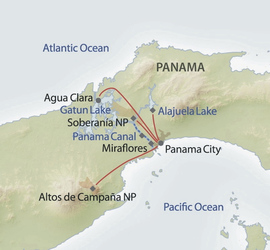 Nationalpark Soberanía, Gatun-See & Miraflores-Schleusen (F/M).Wanderung im Nationalpark Soberanía mit seiner vielfältigen Tropenflora. Im tiefgrünen Dschungel haben sich u.a. Ameisenbären, Tapire und sogar Wildkatzenarten wie Jaguare oder Ozelots niedergelassen. Anschließend Bootsfahrt auf dem Gatún-See. Während der Fahrt haben Sie die Chance Affen, Krokodile, Schildkröten, Tukane oder Faultiere zu beobachten. Nachmittags Stopp an den beeindruckenden Miraflores-Schleusen des Panama-Kanals.