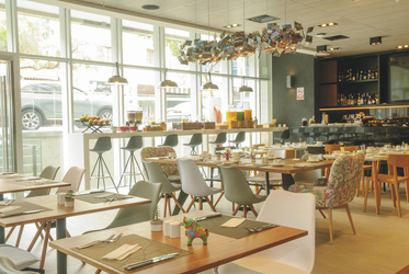 Das moderne und stylische Nichtraucherhotel verfügt über ein Restaurant, Bar, Fitnesscenter, Lounge und eine Dachterrasse mit Pool und einer Bar.