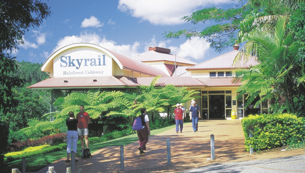 Transfer zum Zugbahnhof und Fahrt (1,5-Std.) mit dem historischen Zug in das Bergdorf. In Kuranda haben Sie freie Zeit. Später Gondelbahnfahrt zurück nach Smithfield (1,5-Std.) und Transfer zu Ihrem Hotel nach Cairns. Alternativ zuerst Gondelbahnfahrt und Zugrückfahrt. Wählen Sie die Uhrzeiten, die für Sie am besten passen.