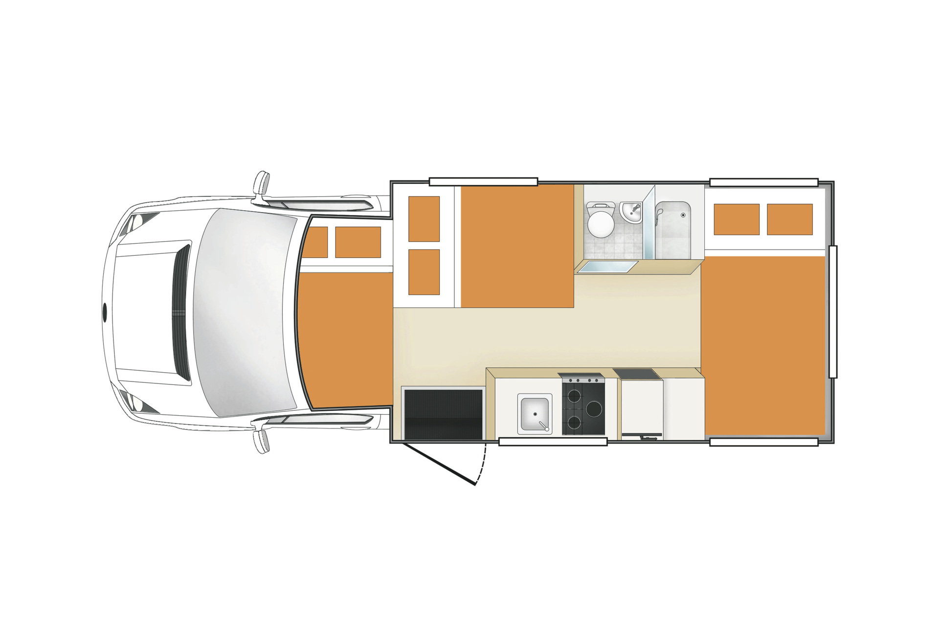 • 2 Sitzplätze in der Fahrerkabine und 4 im Wohnbereich
