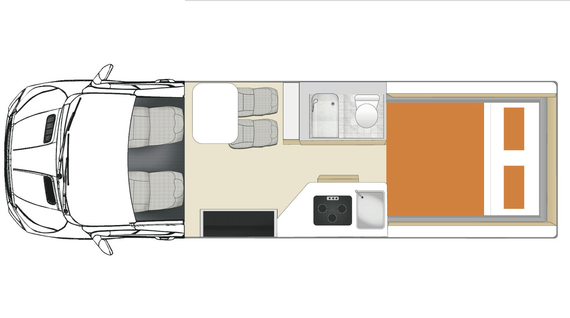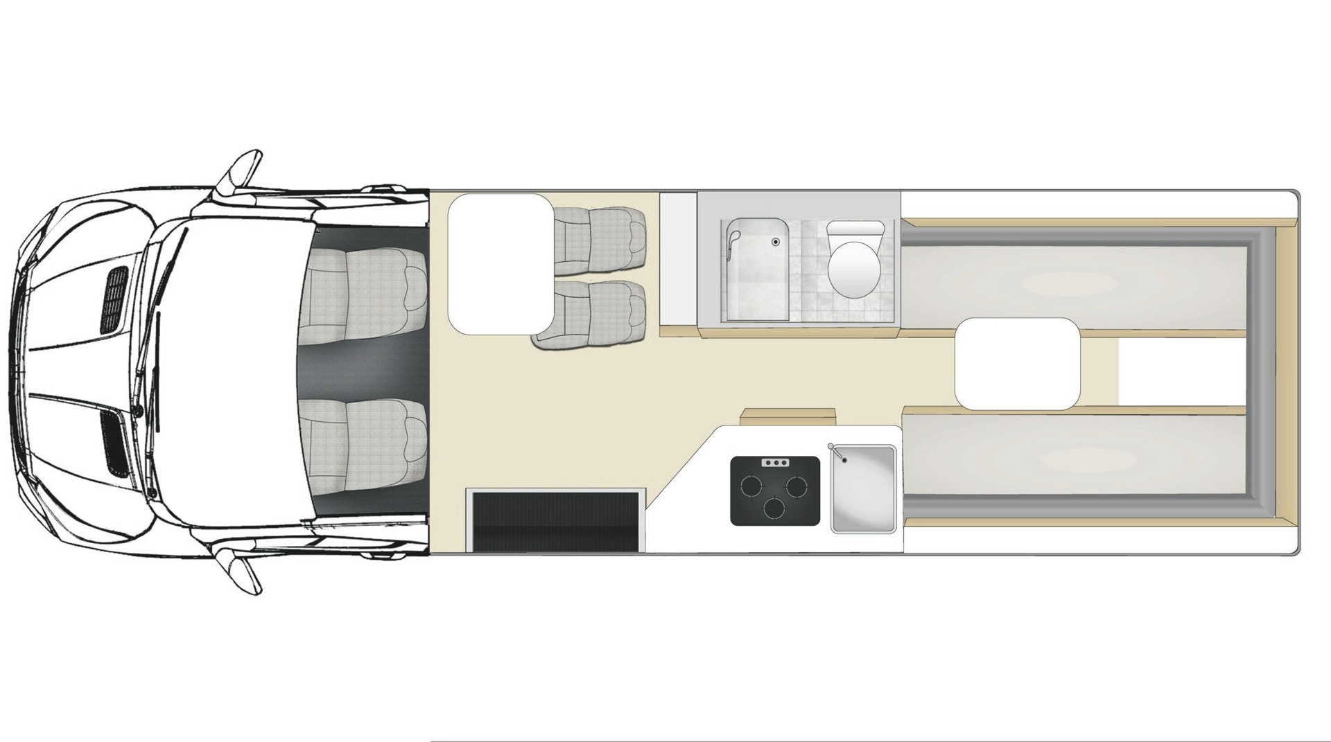 • 2 Sitzplätze in der Fahrerkabine (zur Wohnkabine drehbar)