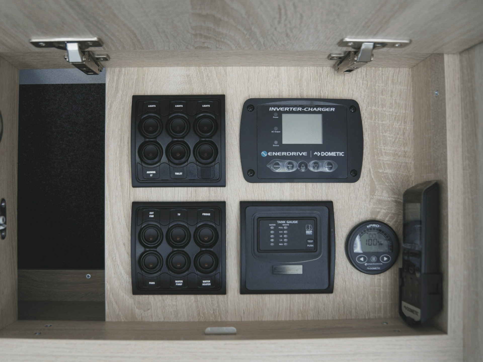 • 400 W Solaranlage mit Wechselrichter (erlaubt Nutzung von 240 V-Geräten mit Bordstrom, lediglich die Klimaanlage/Heizung im Wohnbereich benötigt einen 240 V-Anschluss)