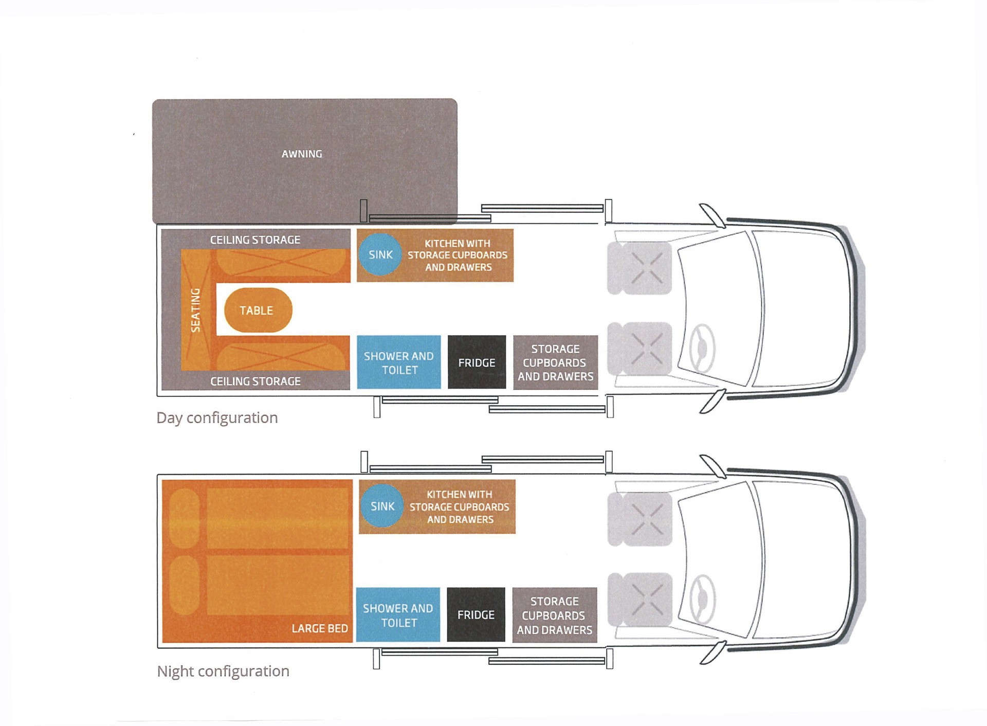 • Klimaanlage/Heizung in der Fahrerkabine während der Fahrt• Klimaanlage/Heizung im Wohnbereich (240 V)