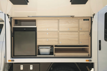 Der "Wanderer Luxe" ist das Premium-Modell in der RedSands-Flotte und kombiniert gute 4WD-Fähigkeiten mit luxuriösem Komfort. Der Aufbau verfügt über ein automatisch öffnendes Hubdach und bietet einen großzügigen Innenraum mit bequemem Bett und Sitzgruppe.