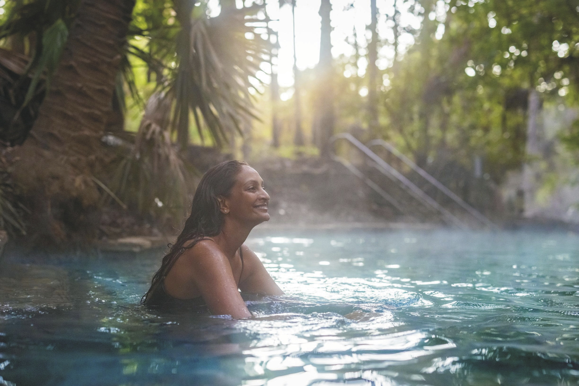 Roper Bar - Katherine (ca. 290 km; F).Die heutige Etappe ist nicht ganz so lang. Der Roper Highway trifft südlich von Mataranka auf den Stuart Highway, der legendären Nord-Süd-Verbindung mitten durch den australischen Kontinent. Im Elsey National Park laden in Mataranka heiße Thermalquellen zu einem entspannenden Stopp ein, bevor die Fahrt nach Katherine fortgesetzt wird. Der Ort, wo das Outback auf die Tropen trifft.