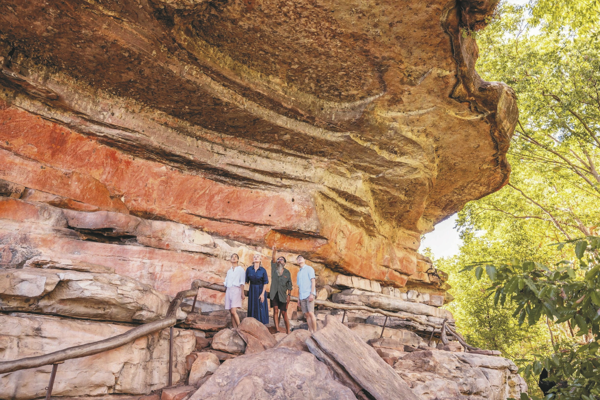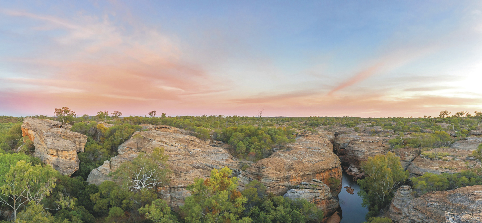 Pine Creek - Jabiru (ca. 300 km).Im südlichen Teil des Nationalparks lohnt der Besuch der Gunlom Falls. Ein kurzer, steiler Aufstieg führt zu einem natürlichen Infinity-Pool mit einer großartigen Aussicht über Kakadu. In Cooinda starten die Bootsfahrten (optional) über den Yellow Water Billabong - bemerkenswerte Entdeckungsreisen durch die Feuchtgebiete des Parks mit Krokodilen, artenreicher Vogelwelt und wechselnden Landschaften. Ein Muss ist später der Besuch von Burrungkuy (Nourlangie), bekannt für ihre zum Weltkulturerbe gehörende Felskunst, ihre farbenfrohe Vogelwelt und ihre leicht zugänglichen Wanderwege und Aussichtspunkte.