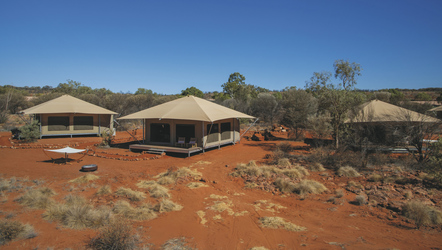 Das Longitude 131° ist eine der spektakulärsten Unterkünfte Australiens: Errichtet auf einer einsamen Sanddüne mit Blick direkt auf den sagenumwobenen Uluru (Ayers Rock).