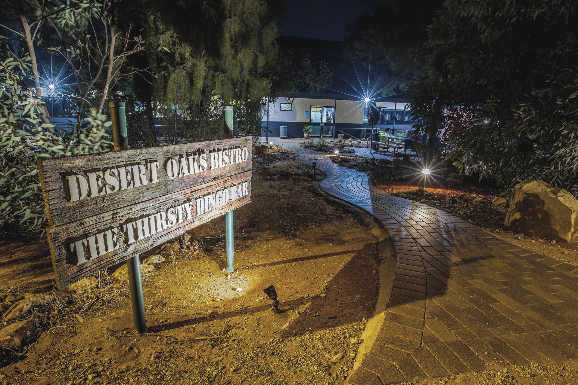 Zu dem weitläufigen Resort zählen u.a. das rustikale Outback BBQ & Grill Restaurant, das Desert Oaks Bistro, die Thirsty Dingo Bar, eine Tankstelle, ein kleiner Supermarkt sowie eine gemeinsame Rezeption für alle Unterkünfte. Gästen des Resorts steht ein eigener Pool sowie das Restaurant Carmichael's zur Verfügung. WLAN gegen Gebühr.Optional buchbar ist das stimmungsvolles Abendessen Under a Desert Moon. Bei einem Glas Sekt und Canapes erleben Sie den Sonnenuntergang und genießen anschließend ein 4-Gänge-Menü an Tischen zu Zweit unter dem nächtlichen Sternenhimmel.