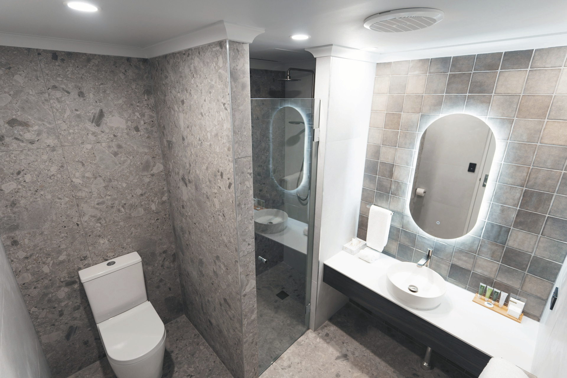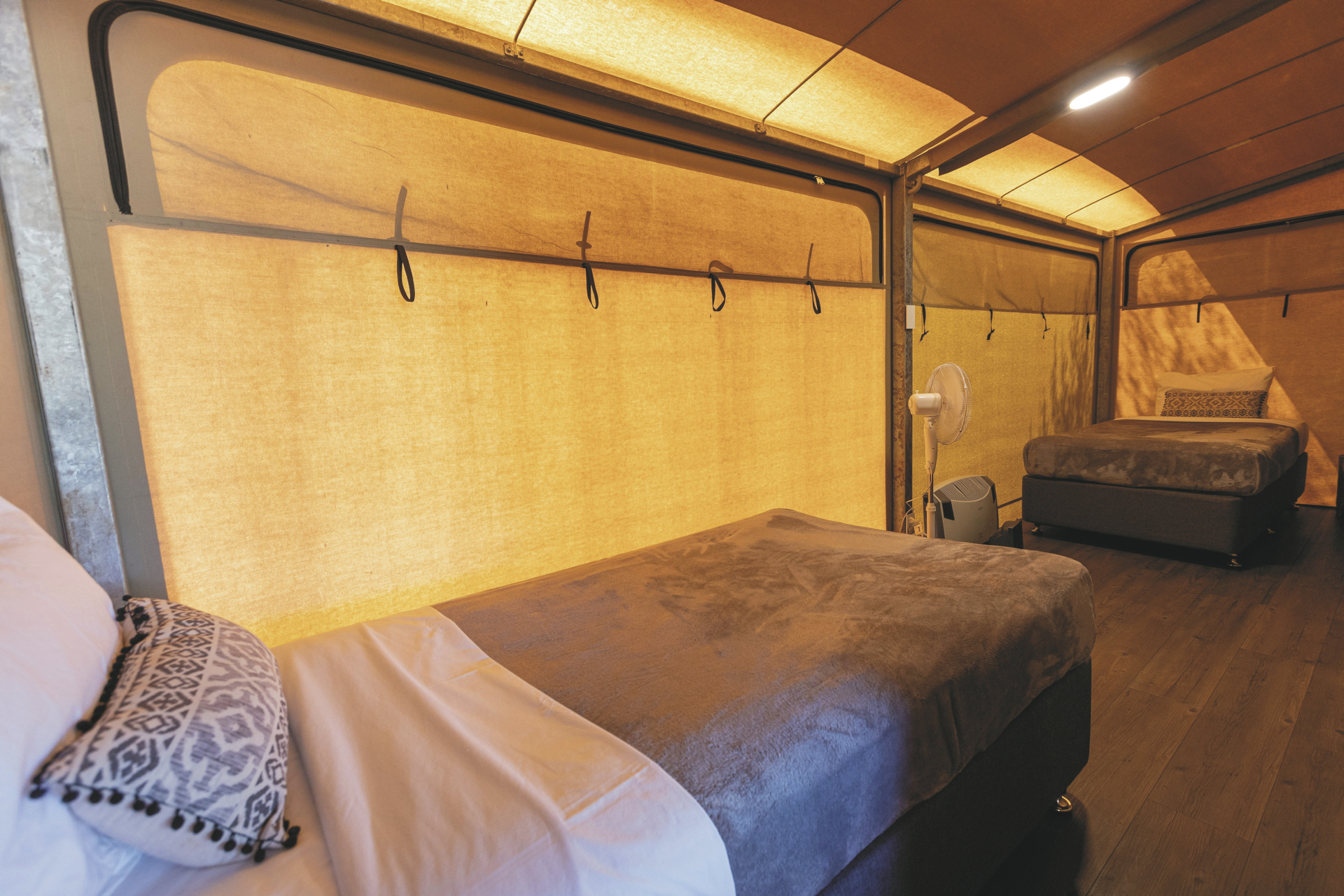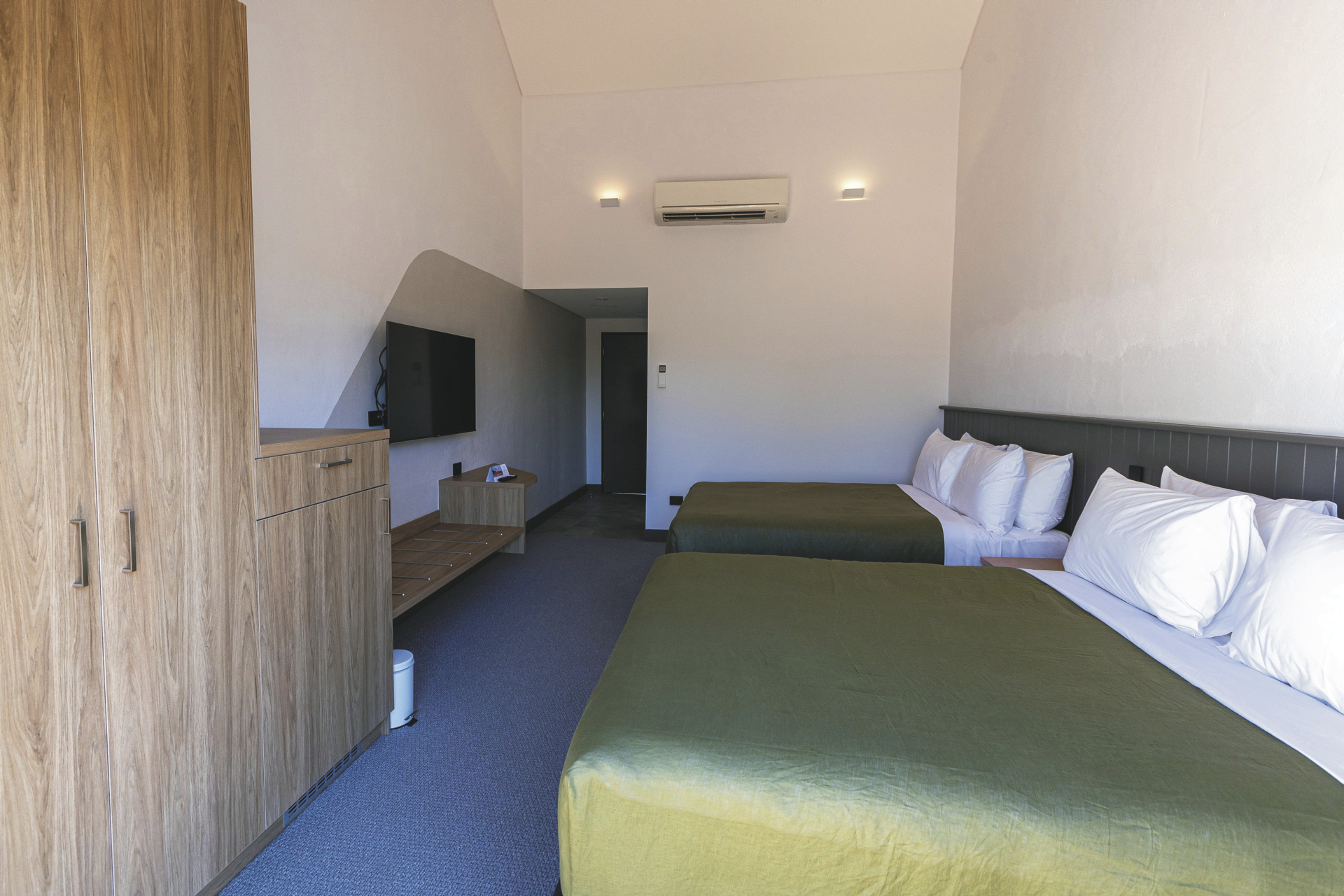 166 Zimmer, darunter 36 einfache Budget-Zimmer nahe des Campingplatzes mit Gemeinschaftsbad. Jenseits der Straße und näher zur Rezeption die übrigen Zimmer, darunter 88 Standardzimmer mit Dusche/WC, Klimaanlage, TV, Telefon, Tee-/Kaffeezubereiter. Deluxe-Zimmer sind geräumiger, besitzen eine große Wanne mit Panoramablick. Schließlich 6 komfortable Zeltbungalows mit Dusche/WC, Klimaanlage, bequemer Lounge, Esstisch und Veranda.