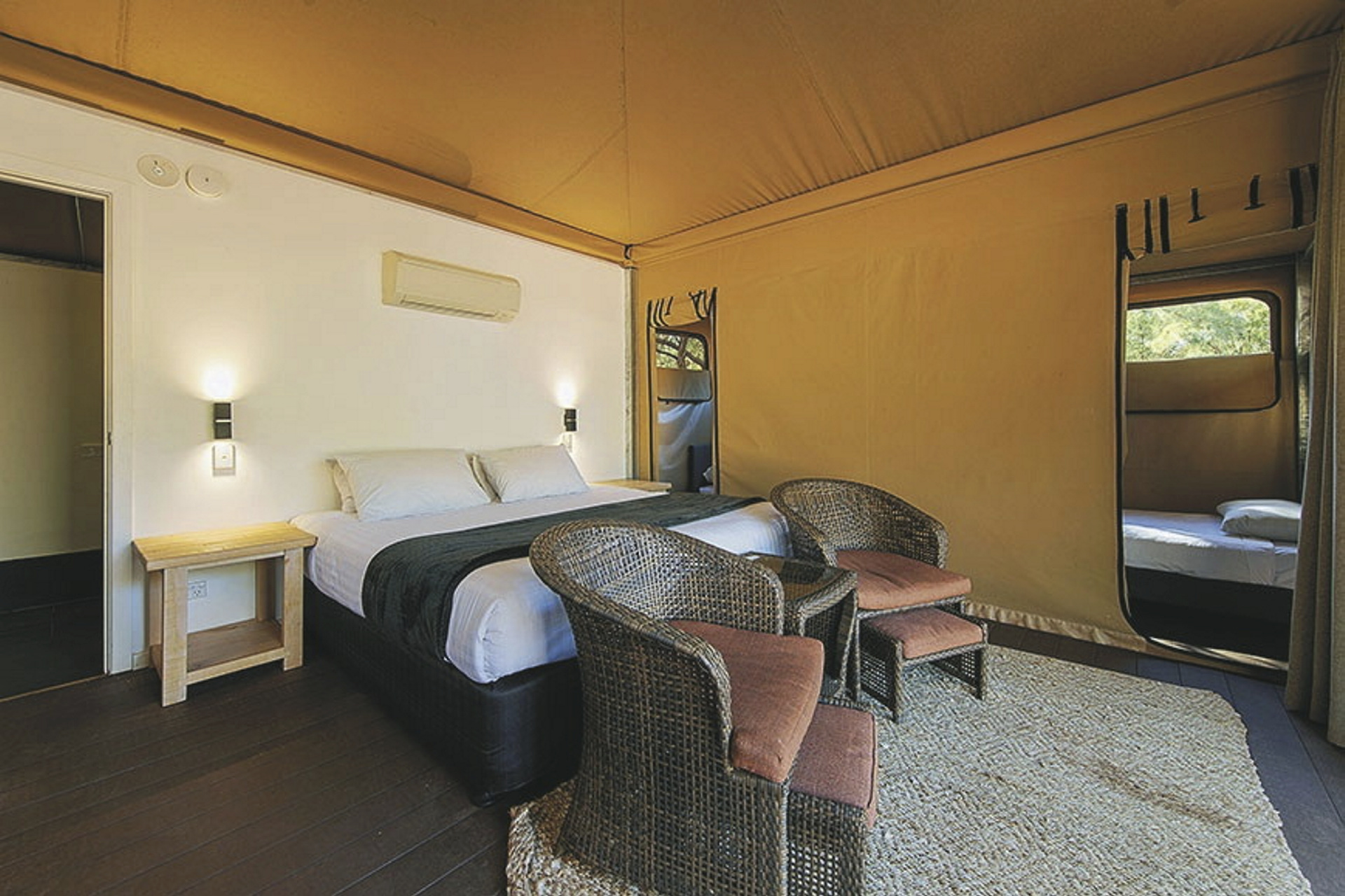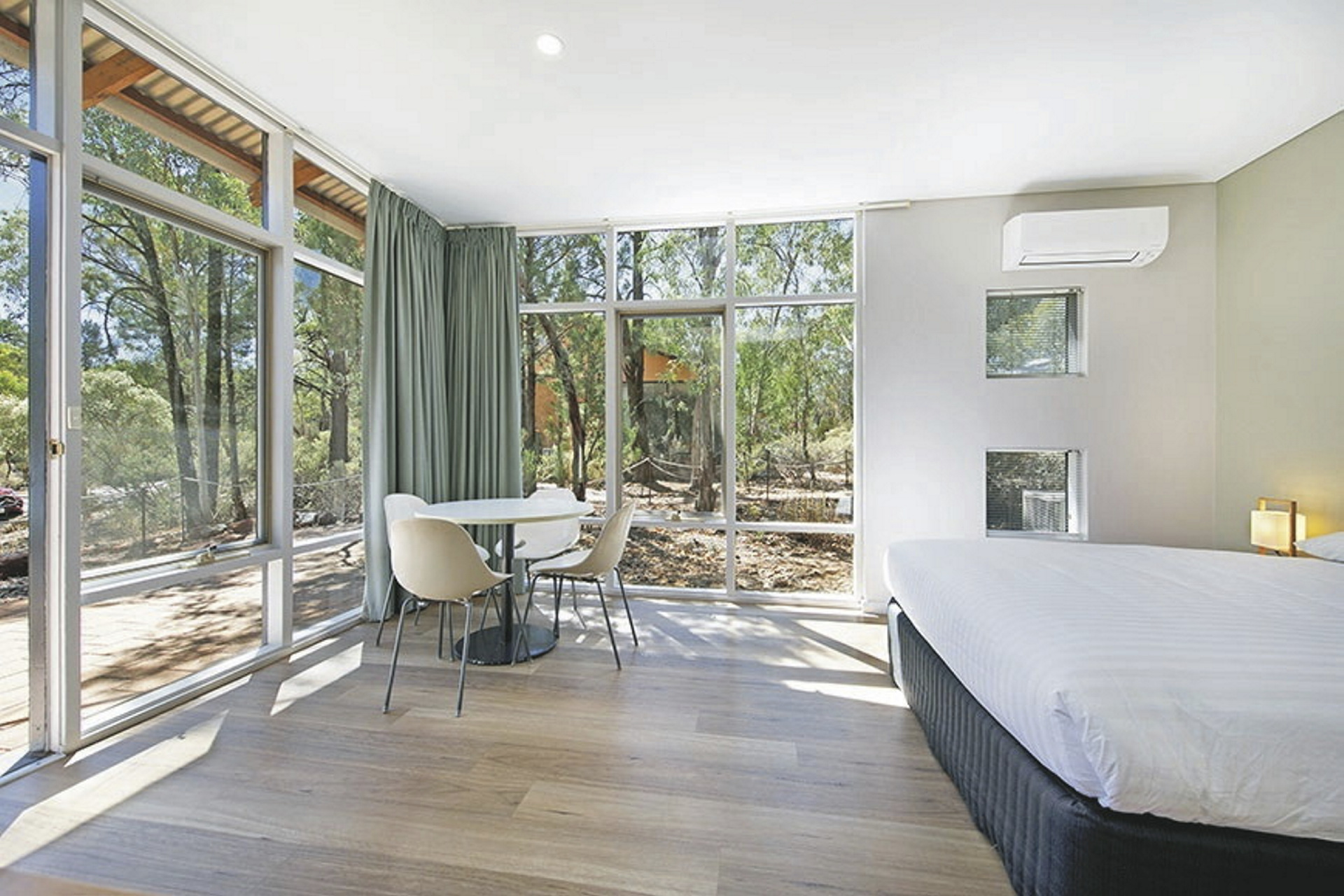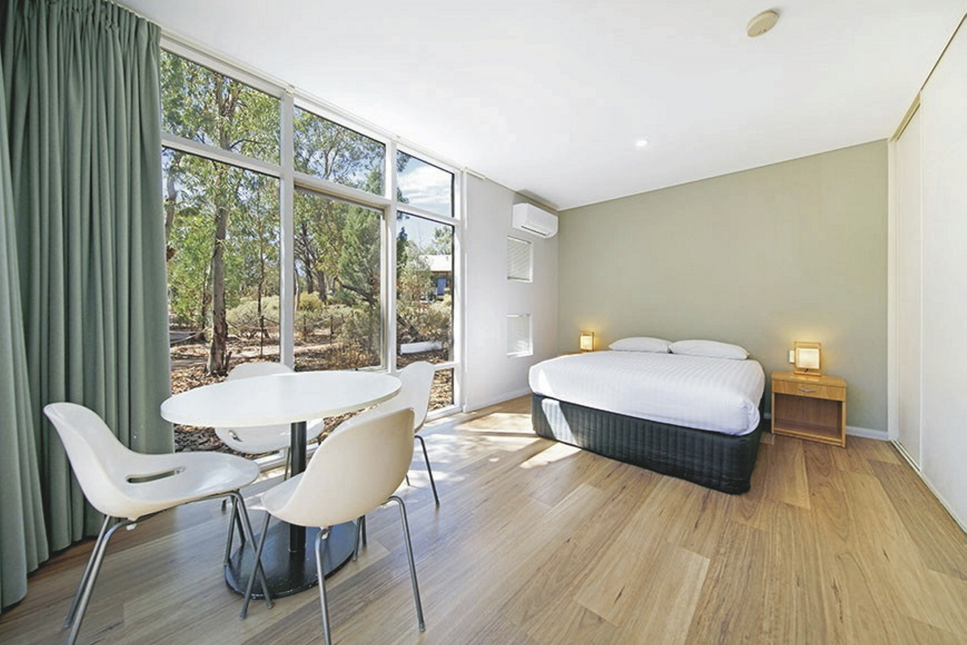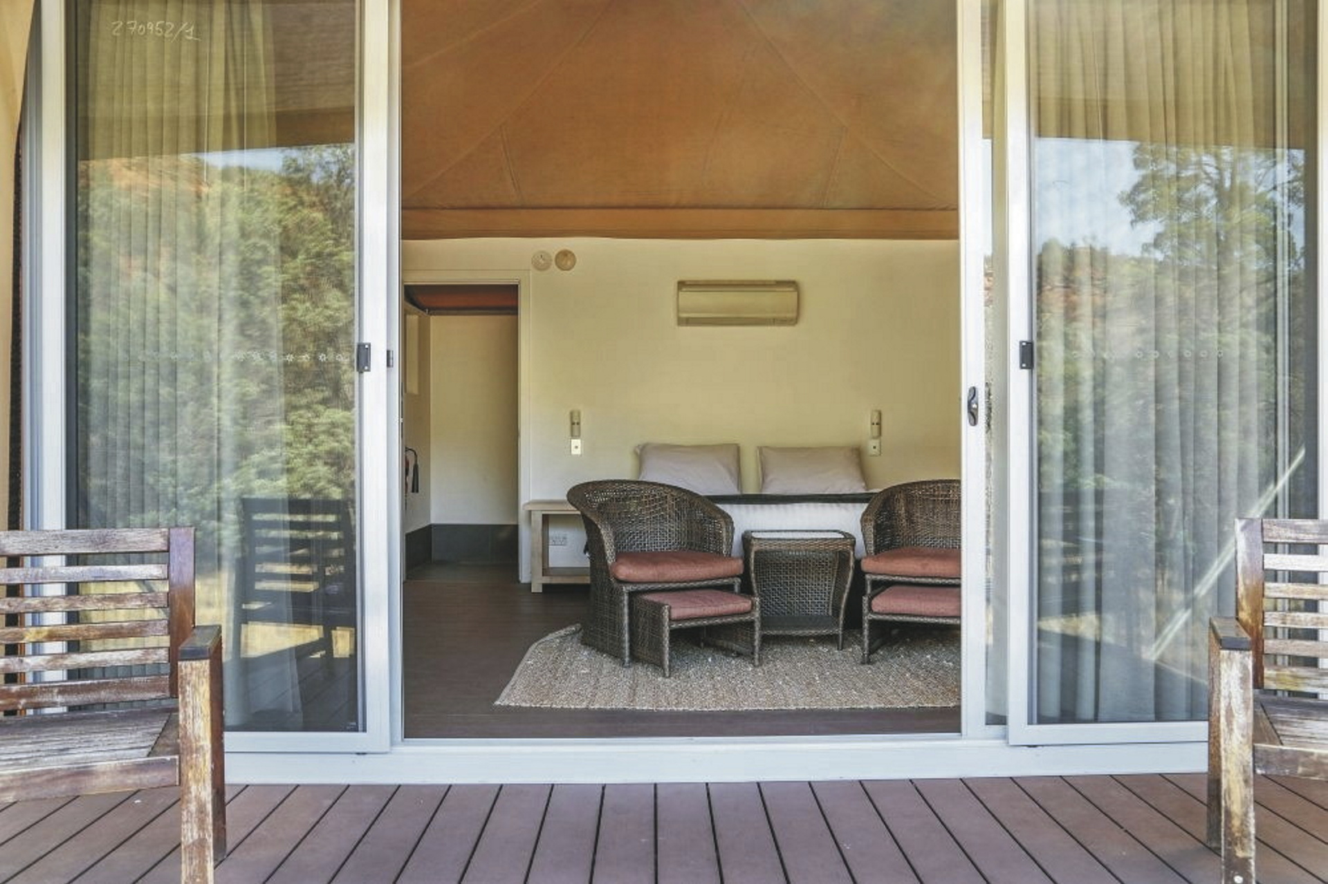 60 Zimmer. Einfachere Aroona-Zimmer im Motelstil oder komfortablere Heysen-Zimmer in hellen Bungalows mit kleiner Terrasse. Alle mit Klimaanlage, Badezimmer mit begehbarer Dusche, TV, Kühlschrank und Tee-/Kaffeezubereiter. Edeowie-Zimmer verfügen zusätzlich über eine kleine Küchenzeile mit Herd und Mikrowelle. Im Ikara Safari Camp (800 m vom Resort entfernt) 15 Bungalowzelte mit Holzfußboden, bequemem Bett, Dusche/WC und Klimaanlage/Heizung.