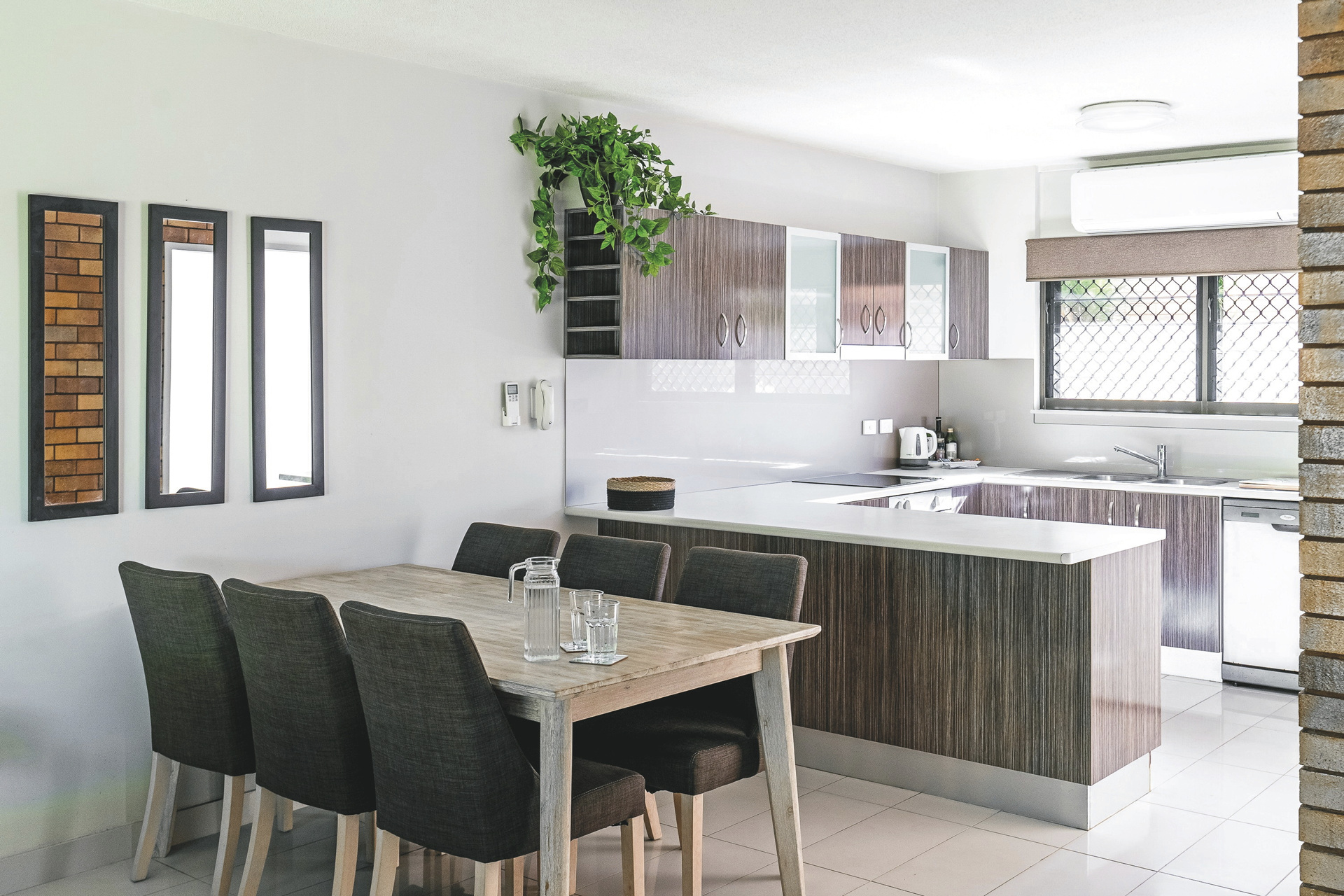 42 geräumige Townhouses (Apartments) mit zwei Etagen. Im Erdgeschoss befinden sich die Küche, der Wohn-/Essbereich und ein WC, im Obergeschoss die Schlafzimmer und das Bad mit begehbarer Dusche, teilweise auch zusätzlicher Wanne (Townhouses mit 3 Schlafzimmern haben zwei Bäder). Zur Ausstattung zählen u.a. Klimaanlage und Ventilatoren, Fön, Smart-TV, eine voll ausgestattete Küche mit Tee-/Kaffeezubereiter, Waschmaschine/Trockner sowie eine Terrasse im Erd- und ein Balkon im Obergeschoss. Vor jedem Townhouse befindet sich ein überdachter Parkplatz.