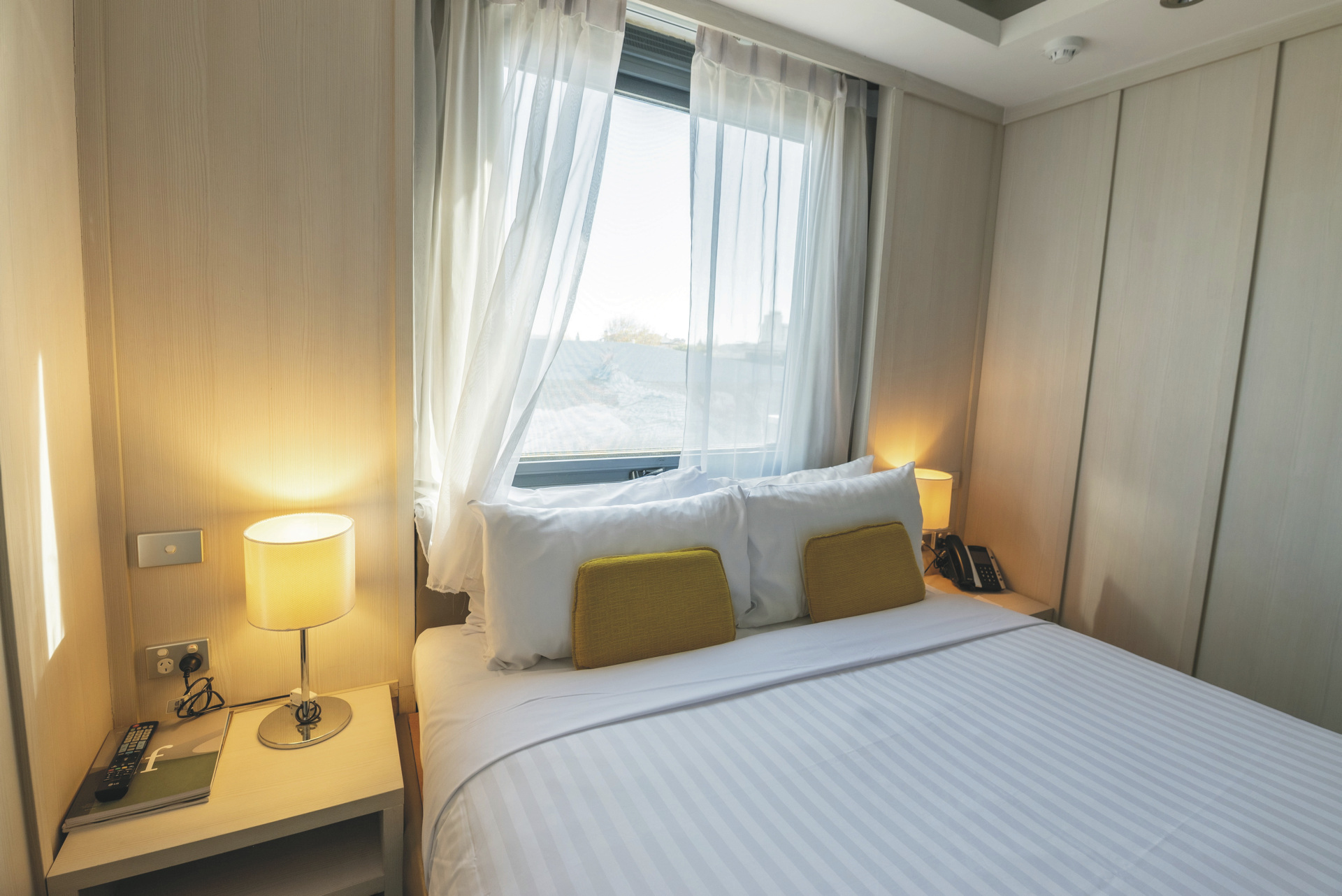 37 modern eingerichtete Zimmer mit bequemen Betten (Kissen-Menü), Dusche/WC mit hochwertigen Toilettenartikeln und Fön, Nespresso-Maschine, Minibar, Zimmersafe und TV. Wahlweise kompakte Superior Cabins (15 m²) oder - unsere Empfehlung - größere Staterooms (32 m²).