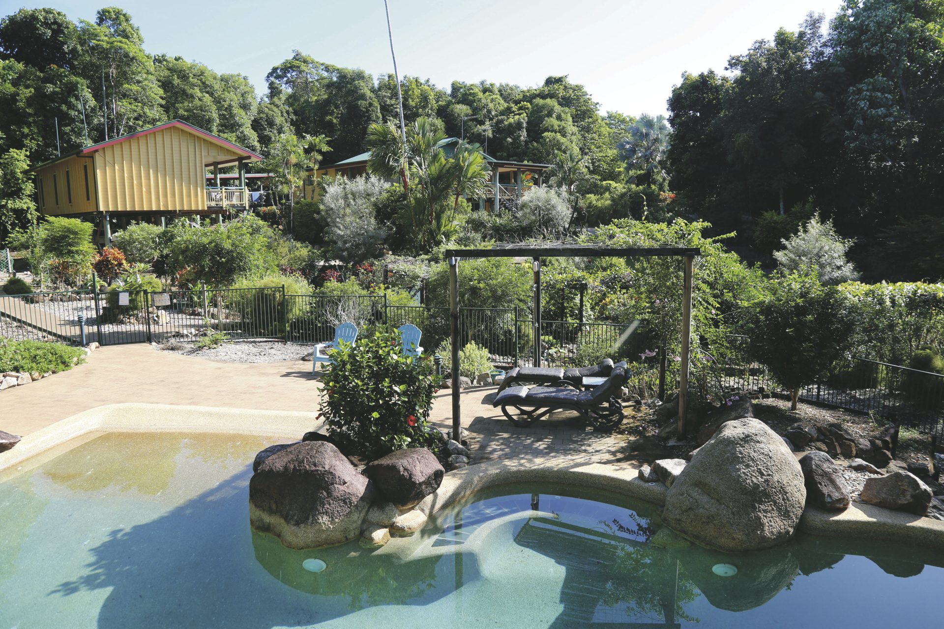 Die Lodge liegt auf einem großen privaten Grundstück, das tropischen Regenwald und gepflegte Gärten vereint. Den Gästen steht eine Lounge, ein schöner Pool, BBQ-Einrichtungen sowie eine Waschmaschine zur Verfügung. WLAN ist kostenfrei. Das leckere Frühstück wird auf der Aussichtsterrasse im Haupthaus serviert.