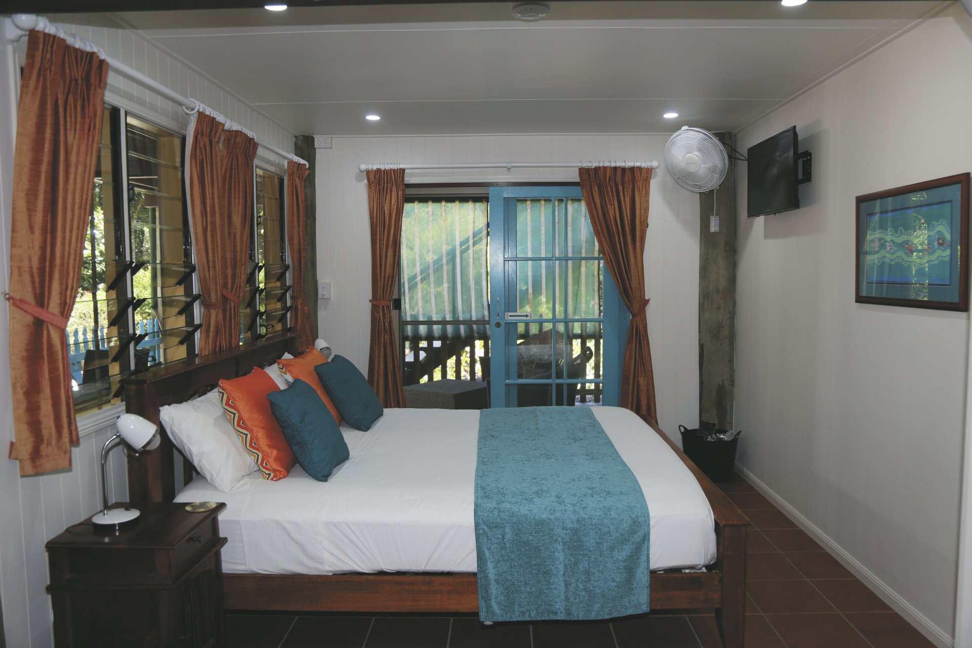 Insgesamt 5 Gästezimmer. Davon 4 Queen-Zimmer in einem Nebengebäude mit Gartenblick von der Veranda und 1 King-Zimmer im Haupthaus mit Garten- und Poolblick. Alle Zimmer mit Deckenventilator und Dusche/WC. Das King-Zimmer mit größerem Bett, Lounge, TV, Kühlschrank und zusätzlicher Badewanne.