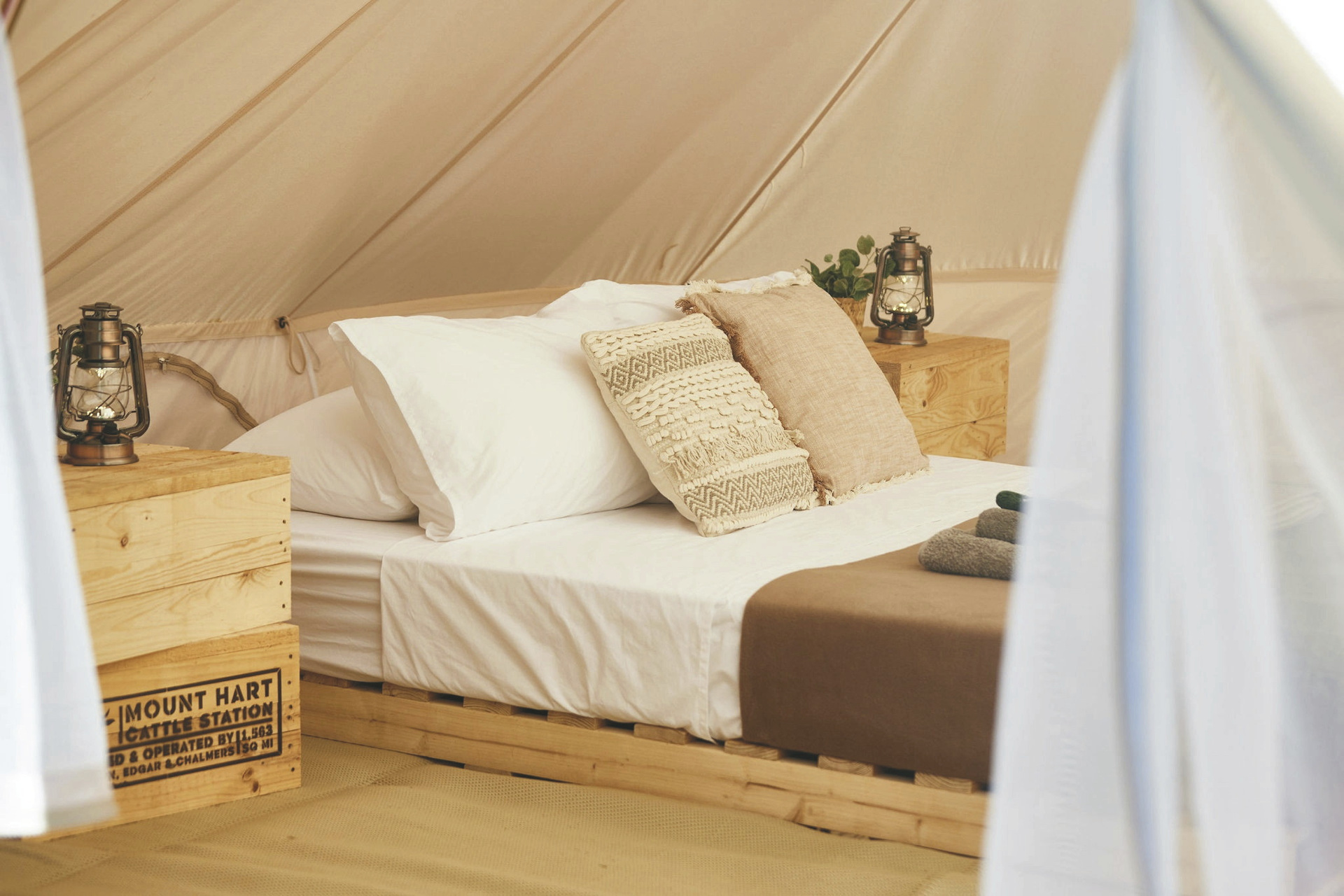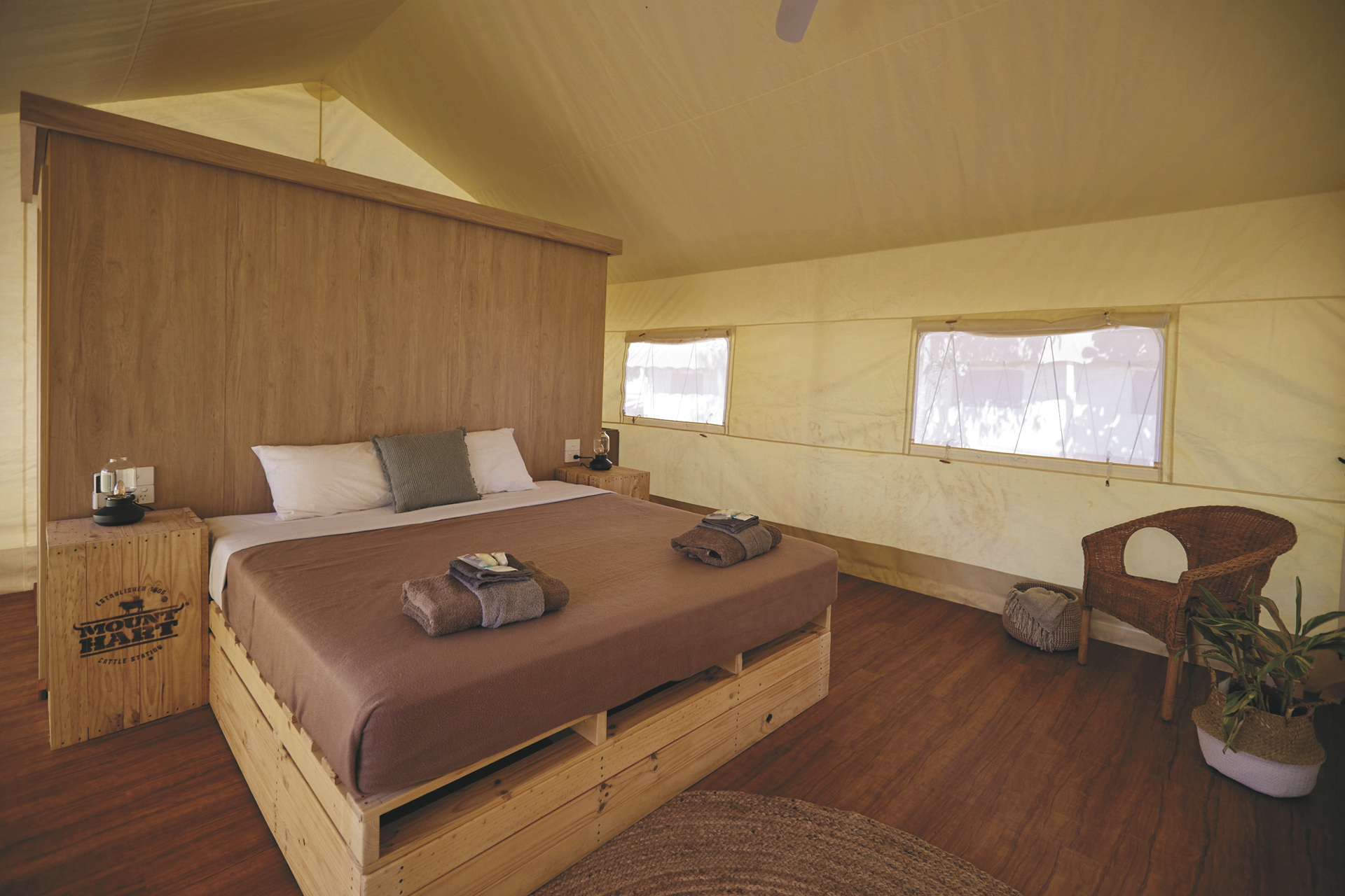Mount Hart bietet verschiedene Unterkünfte. Vier der fünf Homestead-Zimmer verfügen über ein privates Badezimmer, alle über Klimaanlage sowie je ein Doppel- und ein Einzelbett. Ein gemeinschaftlicher Lounge-Bereich lädt zum Entspannen ein. Die Safarizelt-Bungalows liegen nahe zu den zentralen Einrichtungen, bieten Platz für bis zu zwei Personen und sind mit einem komfortablen Doppelbett oder zwei Einzelbetten sowie einem eigenen Bad ausgestattet. Riverside Bell Tents (Zelte) liegen am Flussufer auf dem Campingplatz, 1 km vom Hauptbereich der Lodge entfernt. Die geräumigen Zelte haben Stehhöhe und sind mit einem Doppel- und einem Einzelbett ausgestattet. Gäste nutzen sanitäre Gemeinschaftseinrichtungen. Jeden Abend verkehrt ein Shuttlebus zum Hauptbereich der Lodge.