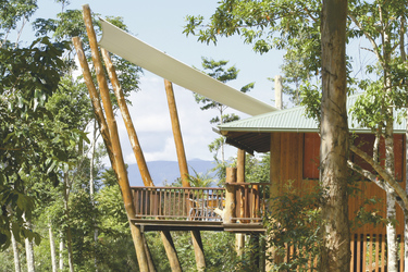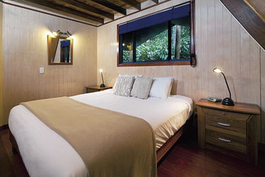 Die 9 luxuriösen Tree Houses (Holzbungalows - wahlweise als Studio oder mit 2. Schlafzimmer im Obergeschoss) sind auf Pfählen errichtet, bieten viel Privatsphäre und verfügen über eine komplette Küche, Waschmaschine und Trockner, ein Bad mit Whirlpool-Wanne, Kaminofen, TV, DVD-Spieler, Uhrenradio, BBQ und einen überdachten Parkplatz. Von der großen Veranda genießen Sie herrliche Ausblicke auf bzw. in den Regenwald. Die 3 neueren Villas haben 2 oder 3 Schlafzimmer auf einer Ebene.
