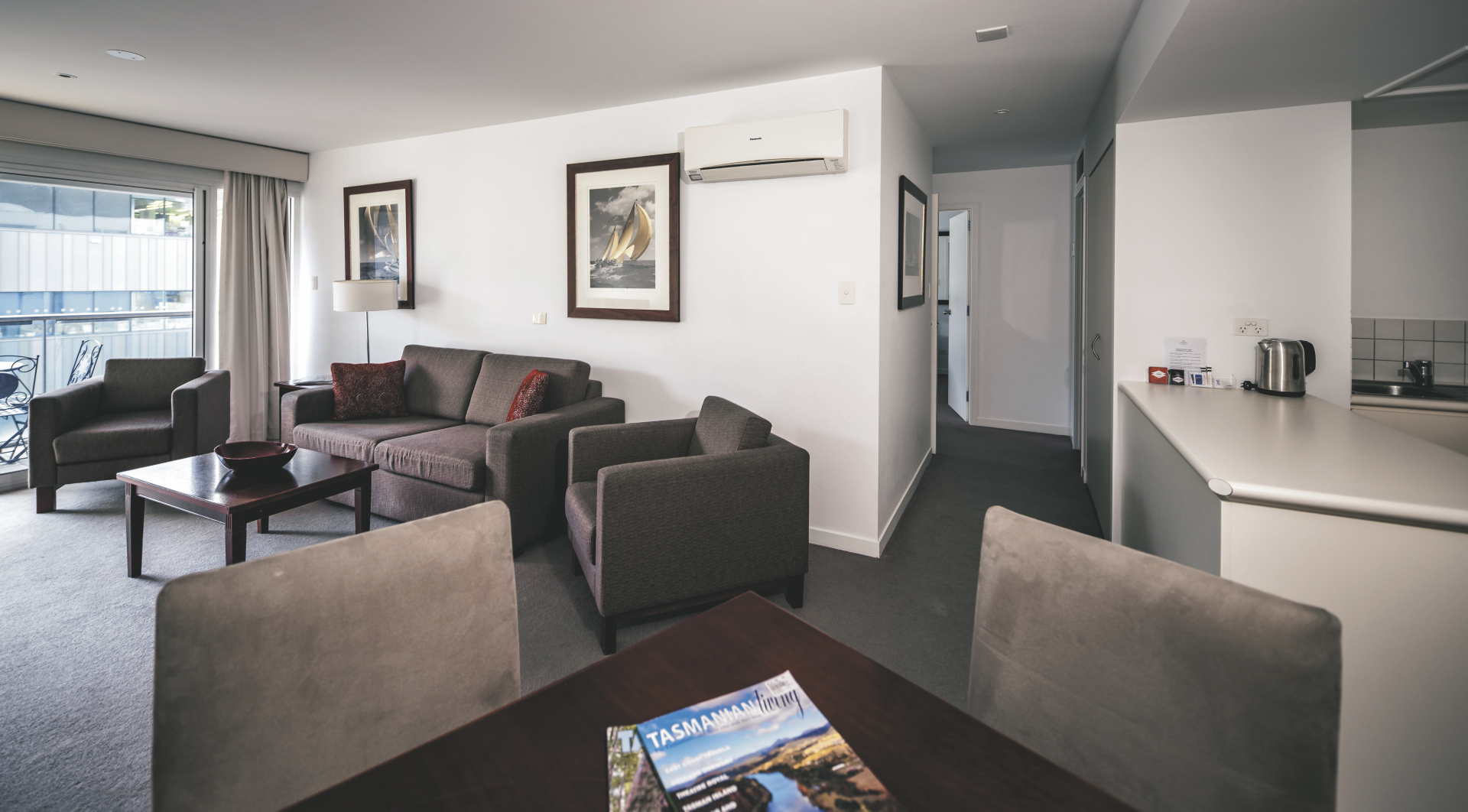 Apartmentanlage der tasmanischen Innkeeper Hotelkette. Im gegenüber liegenden Hotel Lenna of Hobart erfolgt der Check-In und gibt es ein ausgezeichnetes Restaurant und eine Bar.