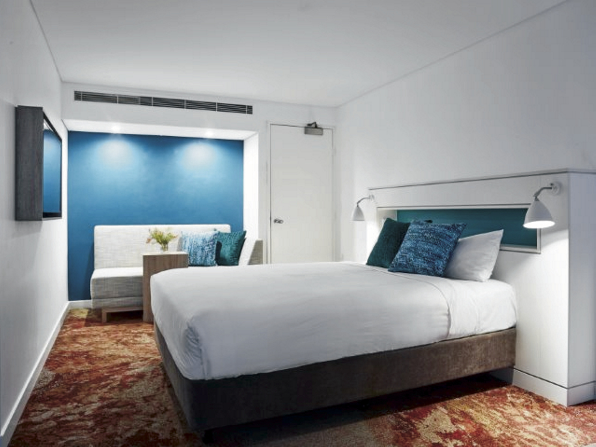 Die 100 kompakten Zimmer sind in Weiß und hellen Farben gehalten und umschließen den Innenhof mit dem Swimmingpool. Sie sind modern eingerichtet und ausgestattet u.a. mit Dusche/WC, Fön, Klimaanlage, Telefon, TV, Minibar und Tee-/Kaffeezubereiter. Standardzimmer verfügen über Fenster im Bad mit satiniertem Glas; King-Zimmer über ein Fenster mit Klarglas im Schlafbereich sowie zusätzlich über ein bequemes Schlafsofa.