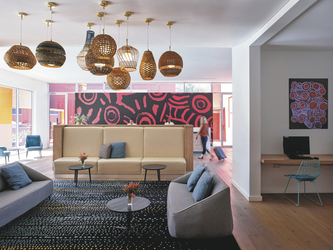 Das preiswerteste Hotel im Ayers Rock Resort, eingerichtet in einer Mischung aus Aborigine- und Stadtthemen.