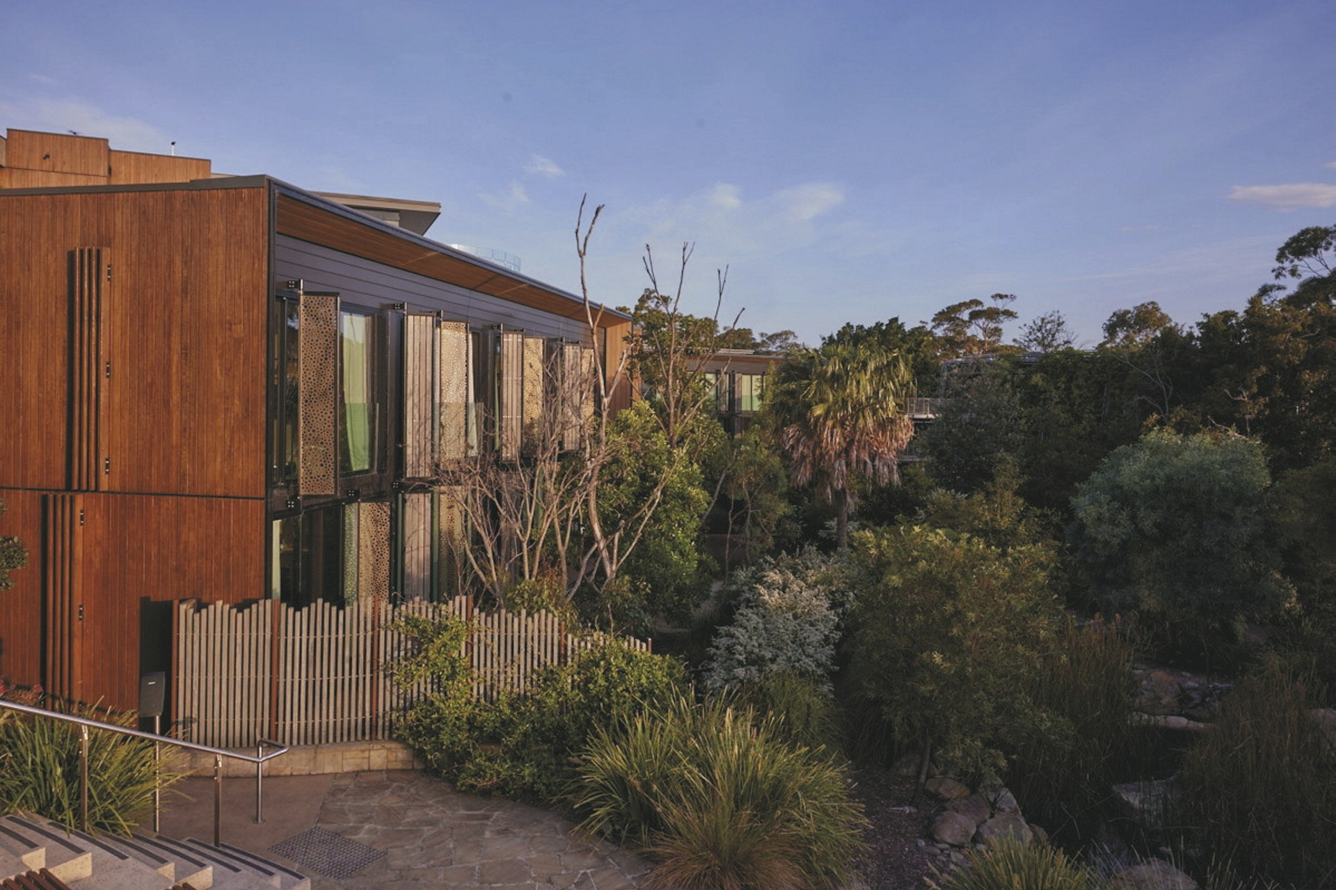 Das Retreat präsentiert sich als nachhaltiges Eco-Resort inmitten geschützter Buschlandschaft und verbindet modernes Design mit direktem Zugang zur Tierwelt. Herzstück ist ein exklusiver Sanctuary-Bereich mit einheimischen Tieren wie Koalas, Wallabys und Echidnas, der nur Gästen zugänglich ist und im Rahmen geführter Touren erlebt werden kann. Ergänzend profitieren Gäste vom inkludierten Zooeintritt während des Aufenthalts. Kulinarisch bietet das Restaurant Me-Gal moderne australische Küche mit saisonalen, lokal bezogenen Produkten und Blick auf den Hafen. Parkplätze im Hauptparkbereich des Zoos sowie WLAN im Hotel sind kostenfrei.