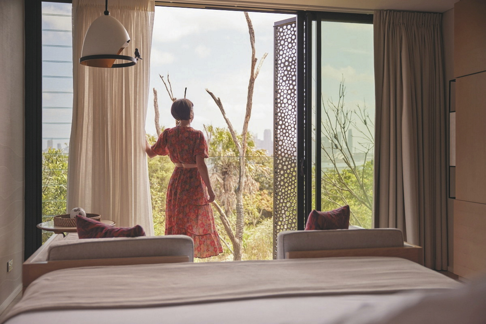 58 modern gestaltete Zimmer (ca. 30 m²) und Suiten (ca. 45 m²). Zur Ausstattung zählen u.a. Bad mit Dusche und Fön, Kingsize-Bett oder zwei Einzelbetten, TV, Safe, Minibar, Klimaanlage und Heizung sowie Tee-/Kaffeezubereiter. Nachhaltige Pflegeprodukte ohne Einwegplastik unterstreichen das Eco-Konzept. Die Zimmer bieten unterschiedliche Ausblicke: Bushland View, Animal View mit Blick auf das Sanctuary sowie Harbour View mit Sicht auf Hafen und Skyline.