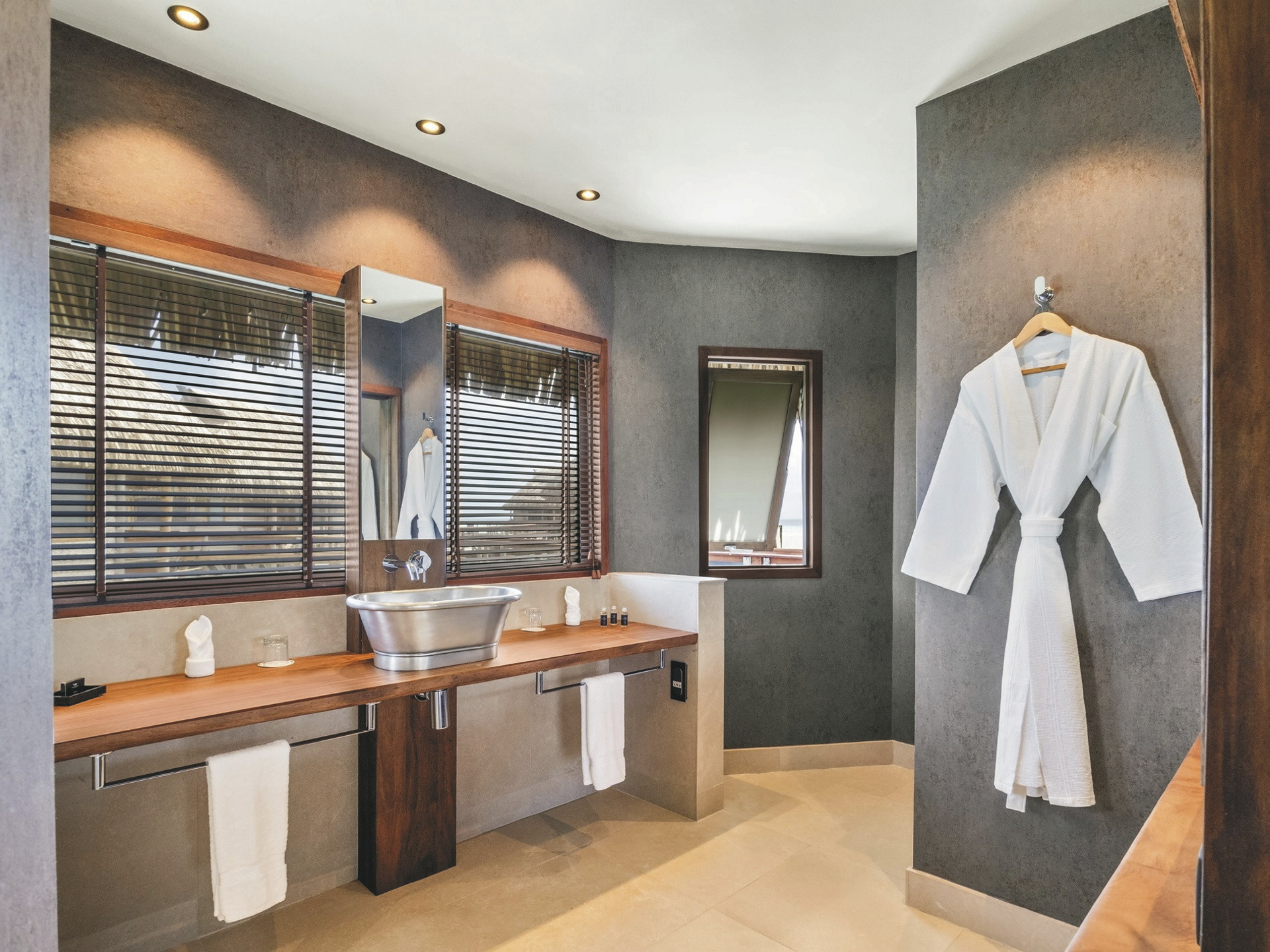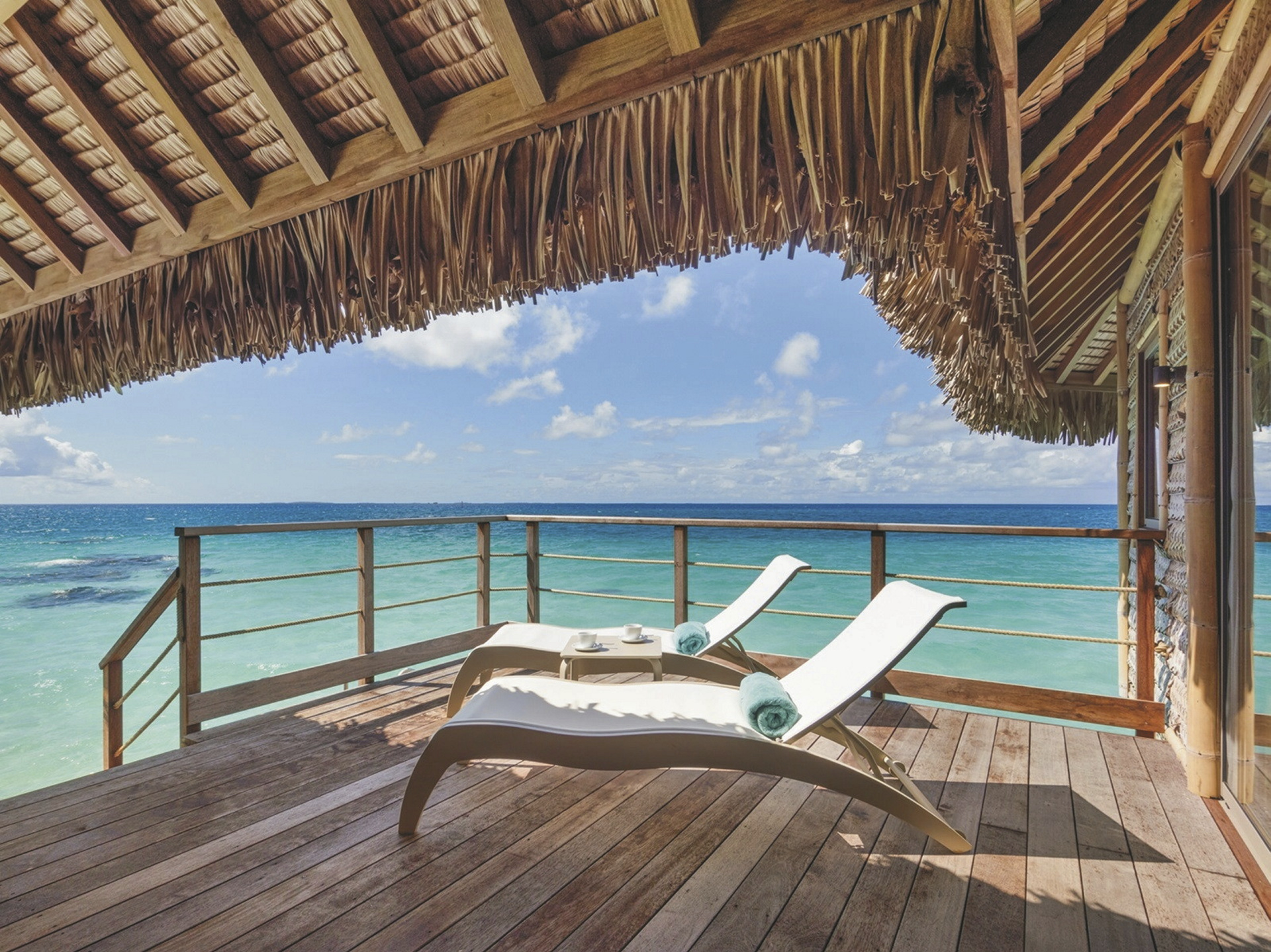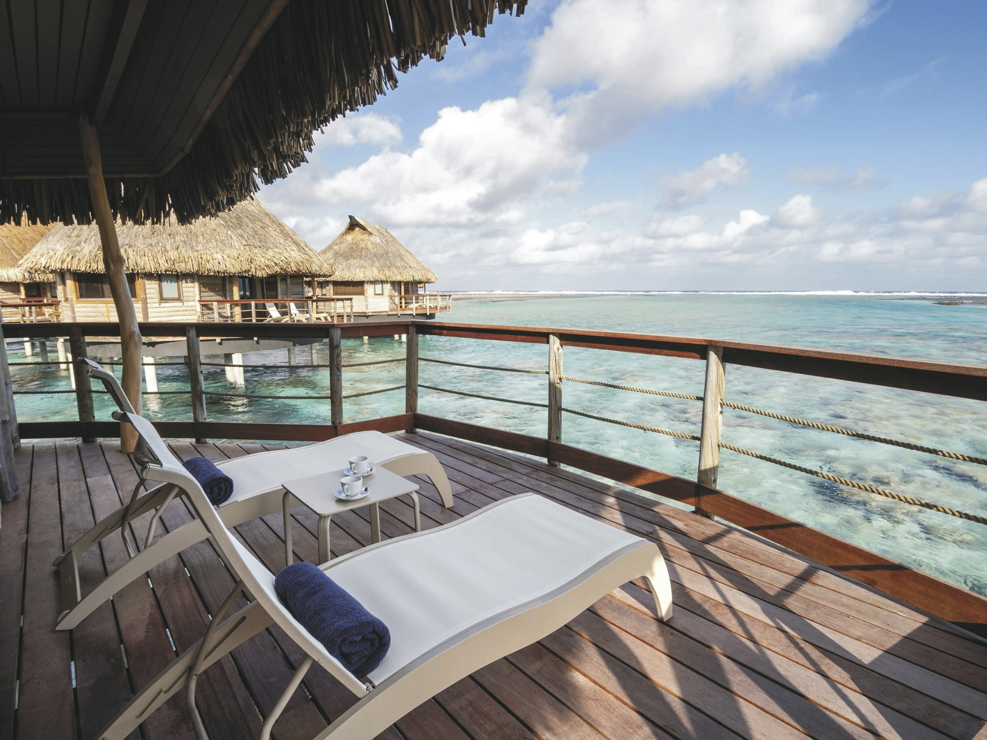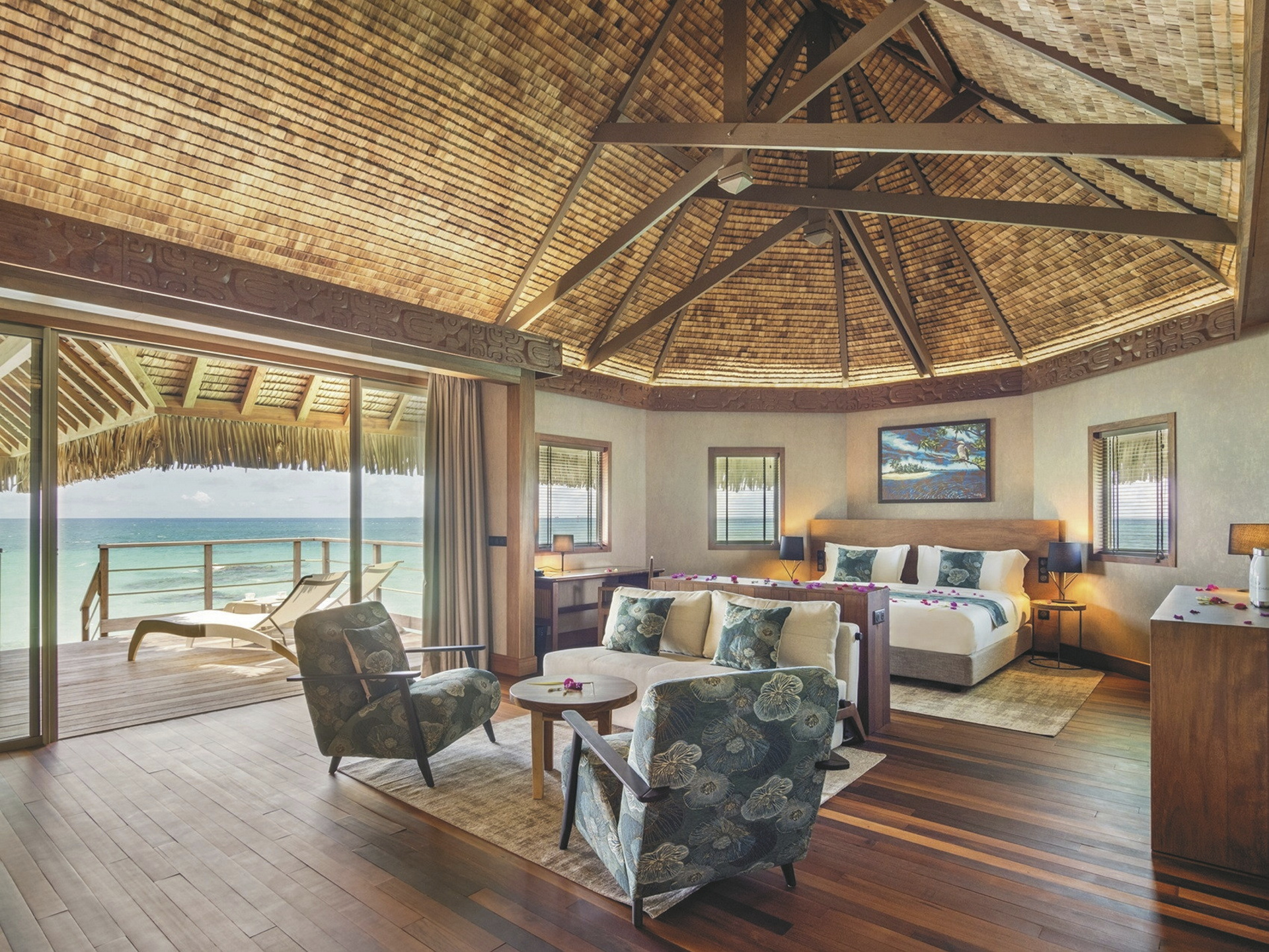 Alle 29 Bungalows sind im polynesischen Design gehalten und bieten gleichzeitig hohen Komfort und neueste Technik.Sie sind klimatisiert, verfügen über Terrasse mit Sonnenliegen, Minibar (täglich Nachschub), Nespresso Kaffeemaschine, Telefon, TV., Safe, Bügeleisen, ein luxuriöses Badezimmer mit Dusche. Durch das Glasfenster im Boden der Overwater-Bungalows können Sie die bunten Fische in der Lagune beobachten. Premium Overwater-Bungalows bieten zusätzlich Zugang zum Meer. Overwater-Suiten bieten viel Platz und im Bad zusätzlich eine Badewanne.