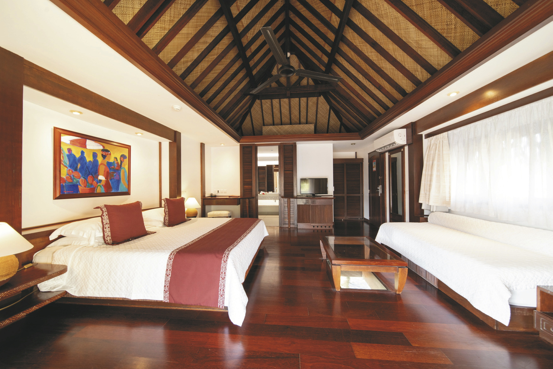 Die Anlage bietet 90 Wohneinheiten vom Gartenzimmer im Reihenbungalow über freistehende Bungalows im Garten und am Strand bis zu Overwater-Bungalows. Alle verfügen über Klimaanlage, TV, DVD, Telefon, Bügeleisen, Minibar, Tee-/Kaffeezubereiter, Safe, Fön und Terrasse. Die Overwater-Bungalows haben zusätzlich Badewanne, Glasboden und Zugang zur Lagune, die Premium Overwater freie Sicht auf die Lagune, und unser Tipp: die Gartenbungalows sind mit kleinem Pool.