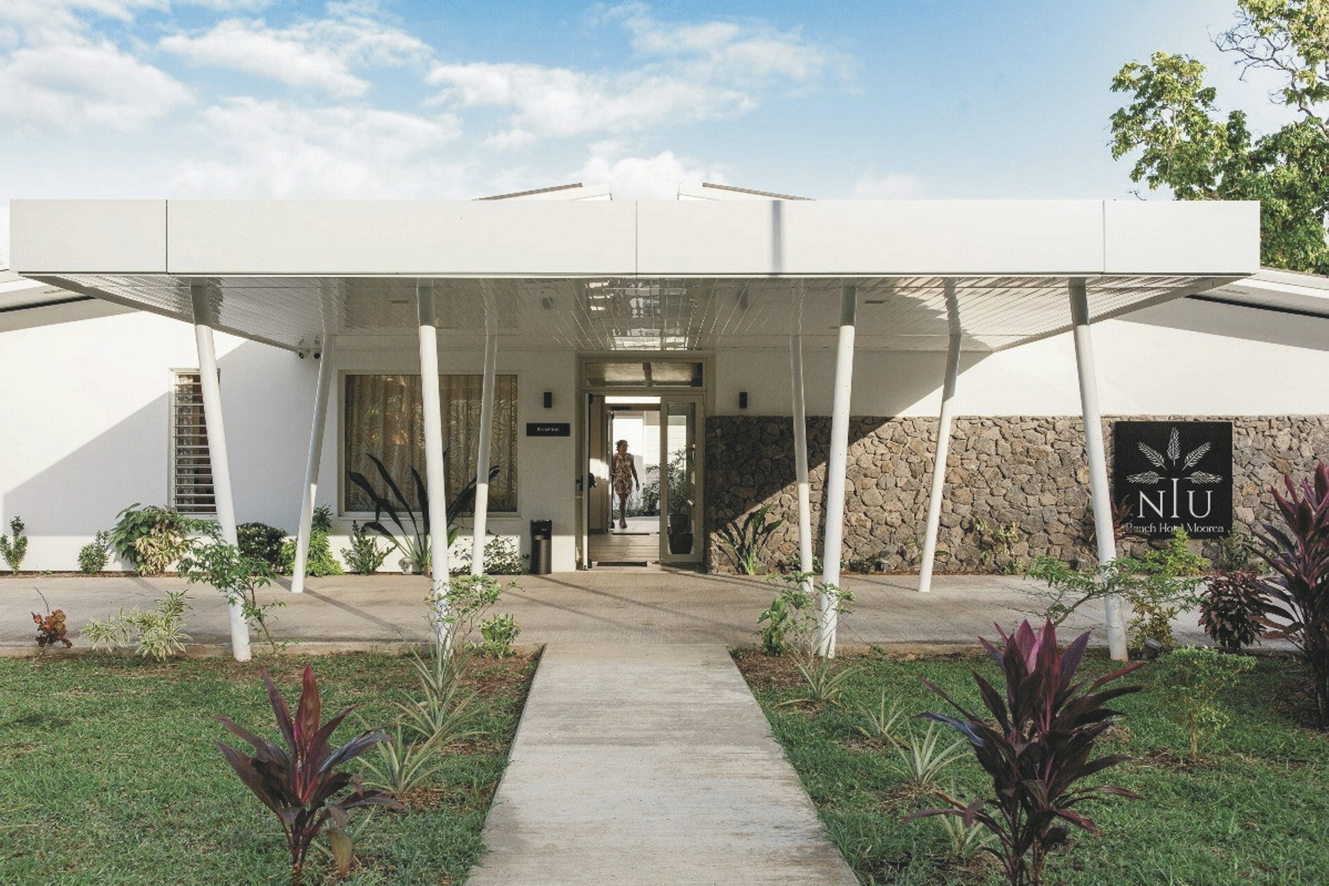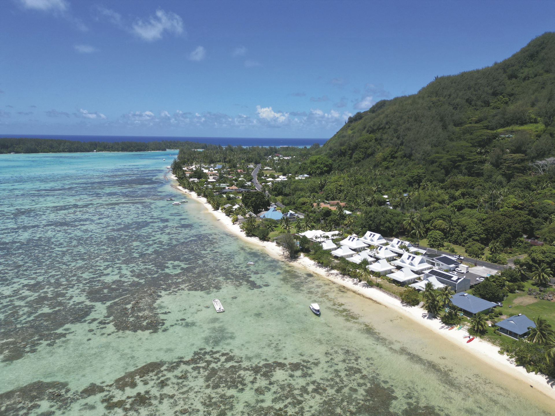 Kleine Anlage am paradiesischen Strand von Tiahura mit freistehenden Bungalows.