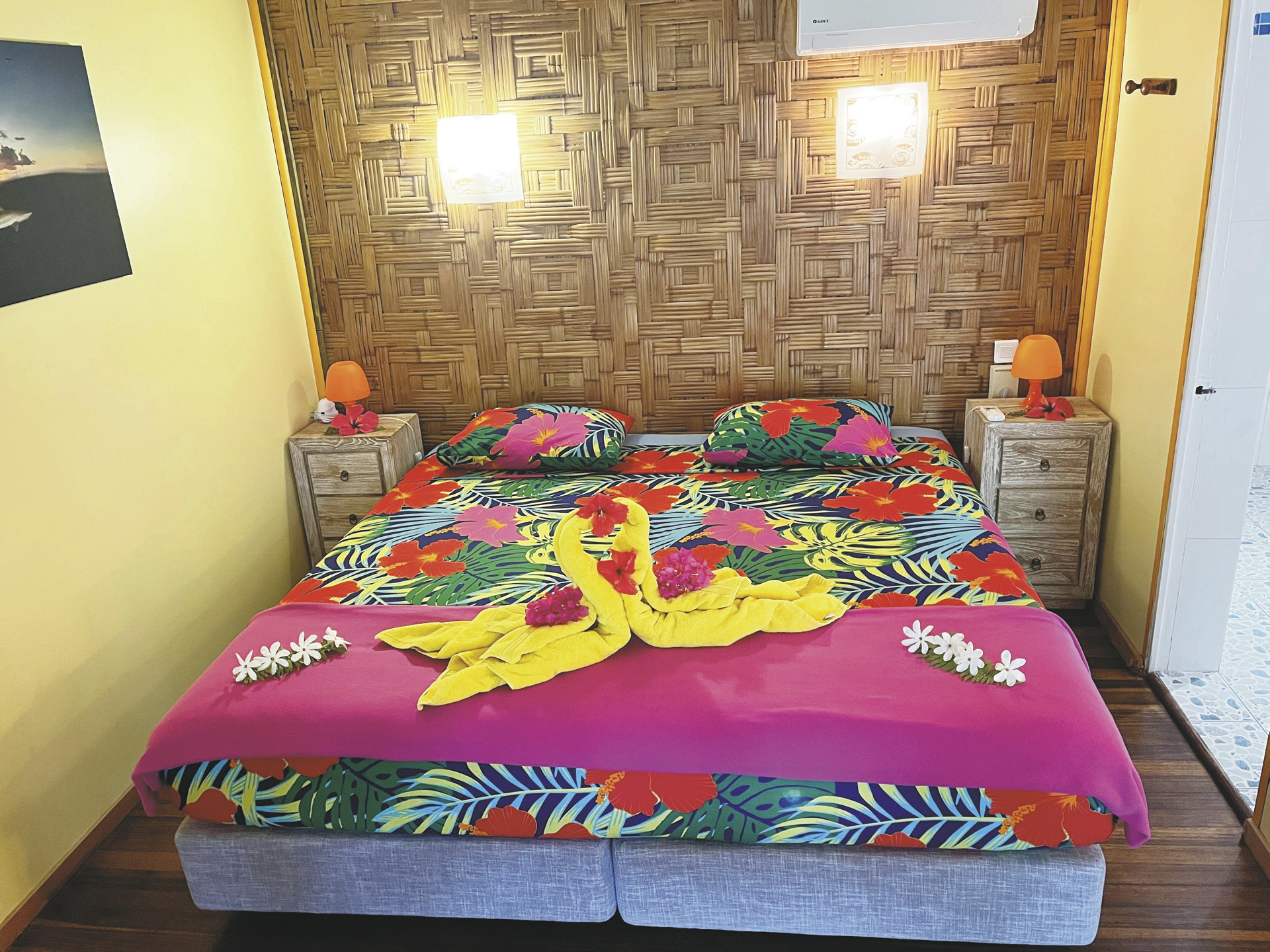 Die Pension liegt 50 min vom Flughafen entfernt in Haapiti und bei den Sand- und Surfstränden von Moorea. Inder nähren Umgebung befinden sich zahlreiche Cafés und Restaurants. Die Bungalows sind alle nur wenige Meter vom Strand entfernt.