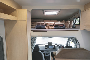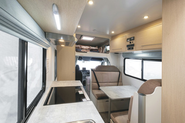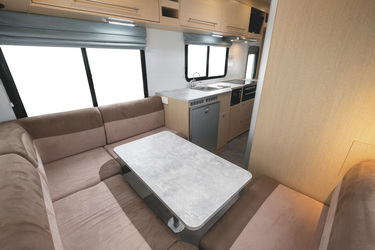• Doppelbett über der Fahrerkabine 2,10 x 1,45 m (mit Sicherheitsnetz)• Hecksitzgruppe, zum Doppelbett umbaubar 2,10 x 1,45 m