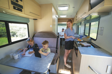 Ein komfortables Motorhome mit Küche und Sanitärraum. Ideal für 3-4 Personen.