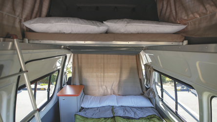 Der kompakte, beliebte Hi Top Campervan in der Familienversion mit zusätzlichem Doppelbett im festen Hochdach. Geeignet max. für 3 Erwachsene oder 2 Erwachsene und 2 Kinder.