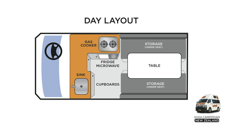 • Sonderausstattungen wie z.B. Kindersitze (NZD 45 pro Miete), portables Navigationssystem (NZD 7 pro Tag, max. NZD 140 pro Miete) oder Campingmöbel (Tisch NZD 30, je Stuhl NZD 15 pro Miete)