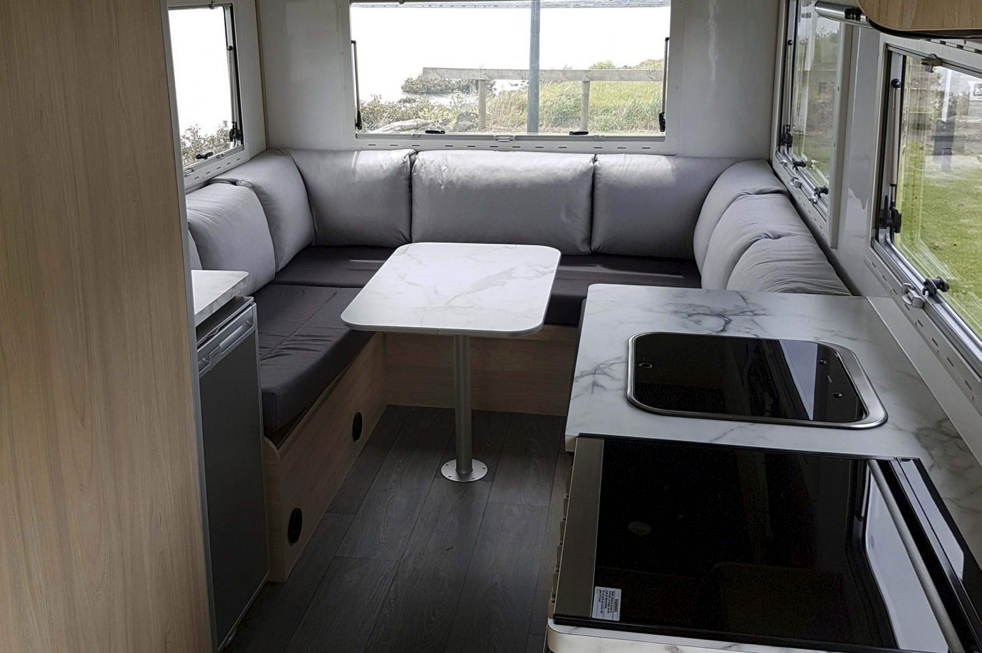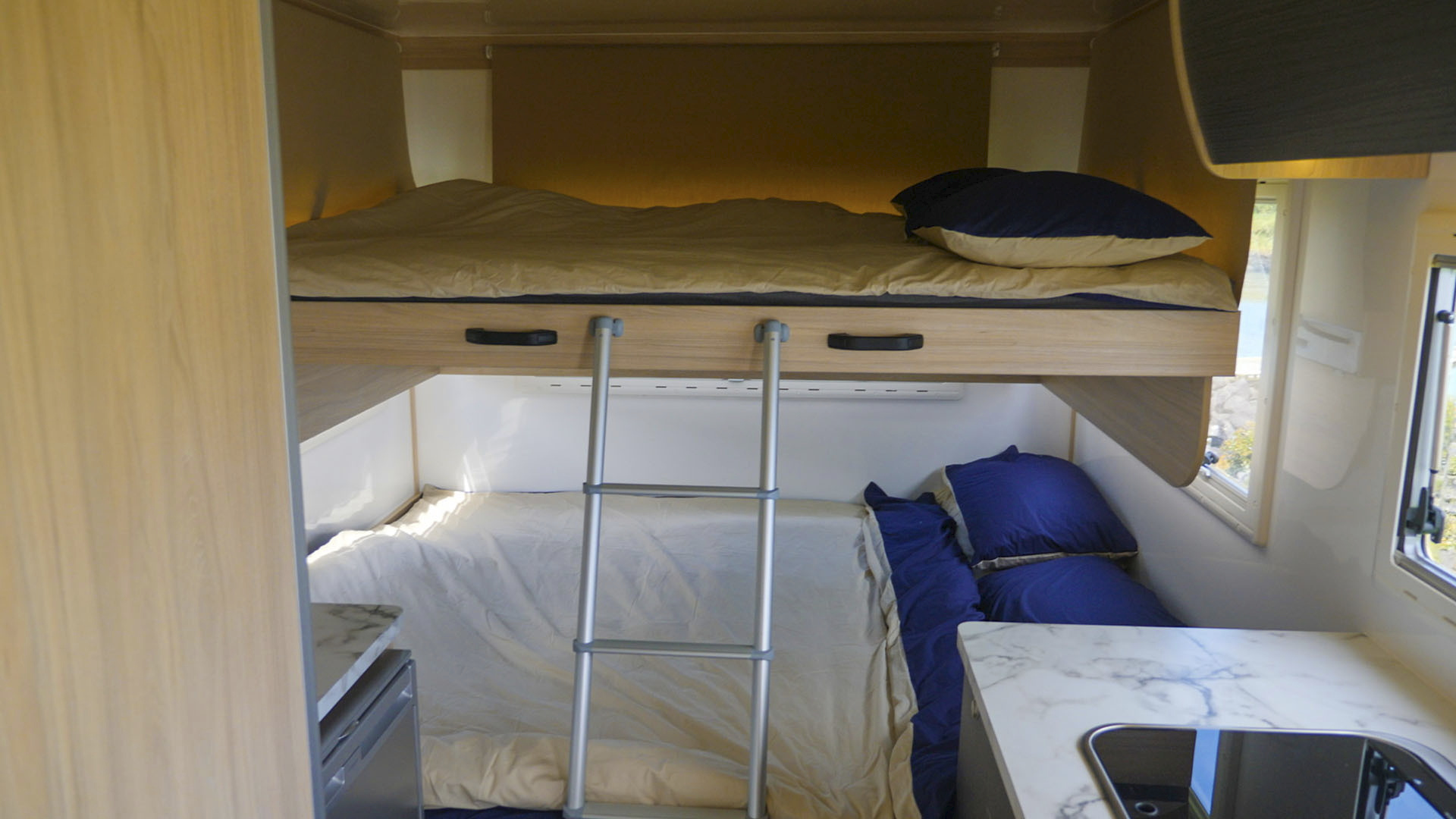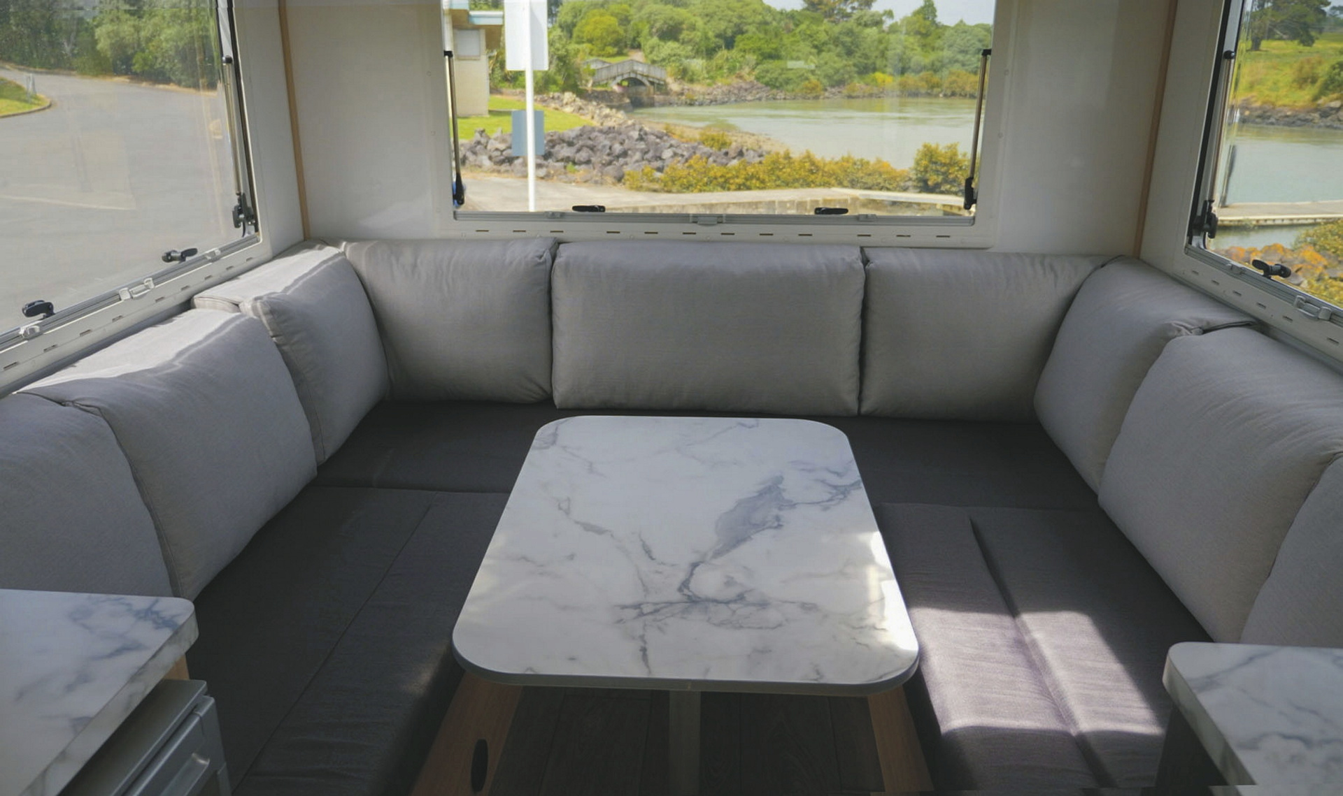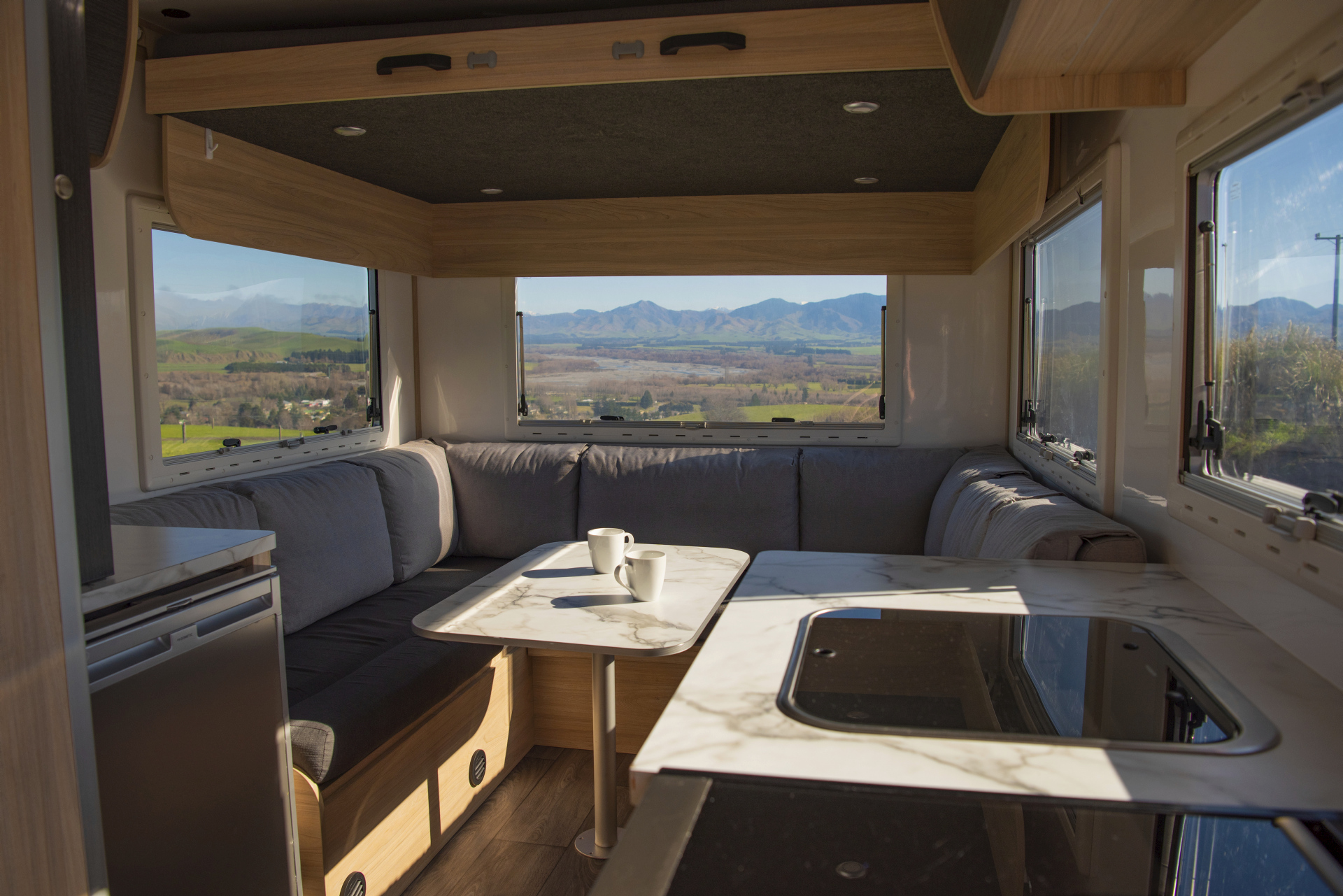 Eines der größten Wohnmobile in Neuseeland. Mit großzügiger Ausstattung, elegantem Design, Luftfederung an der Hinterachse für mehr Fahrkomfort und ausreichend Platz für bis zu 6 Erwachsene, die während der Fahrt alle im vorderen Bereich sitzen.