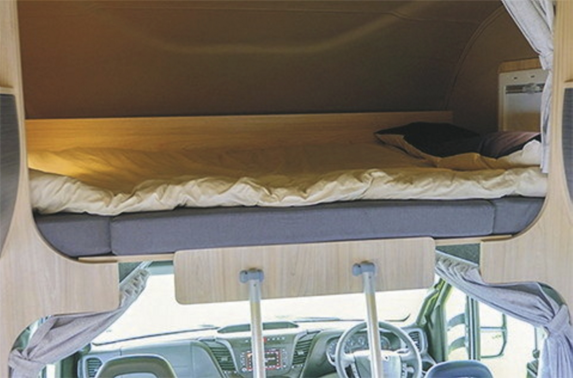 • Doppelbett über der Fahrerkabine (2,10 x 1,48 m)• Sitzgruppe im Heck, zum Doppelbett umbaubar (2,10 x 1,80 m)