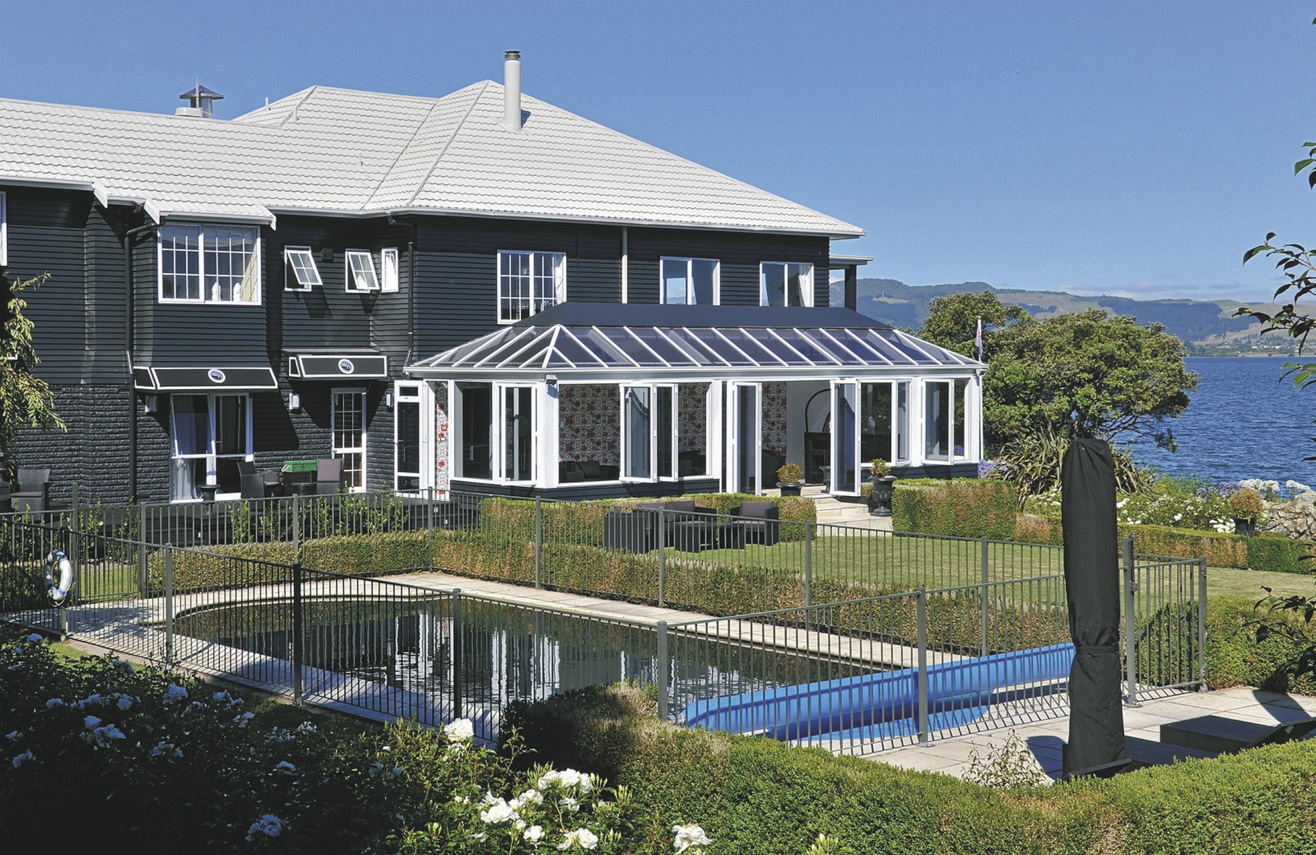 Das Black Swan vereint klassische Raffinesse und zeitgenössischen Chic zu einem durch und durch ansprechenden und einzigartigen Hotel mit sehr persönlichem Service. Auf einem Hektar Grundstück finden Sie Rosengärten, weitläufige Rasenflächen, einen Pool, Sauna, Privatsteg, Heli-Pad.Genießen Sie den Panoramablick auf den See während Ihres Essens. Die Küchenchefs zaubern jeden Abend Gerichte auf Sterneniveau - ein Erlebnis das Ihre Sinne begeistern wird. WLAN kostenlos.